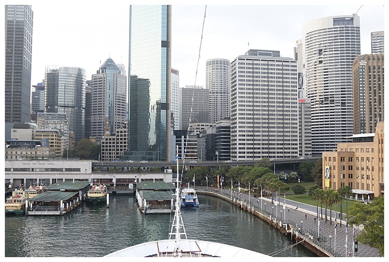 Passing the Opera House, we turn to port, approaching the Passenger Terminal, right in the centre of the city. We are fortunate, for her last 4 calls, the Amsterdam has been berthed either at Darling Harbour, (which is now a building site), or White Bay terminal, miles away from anywhere.
