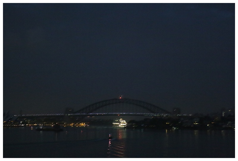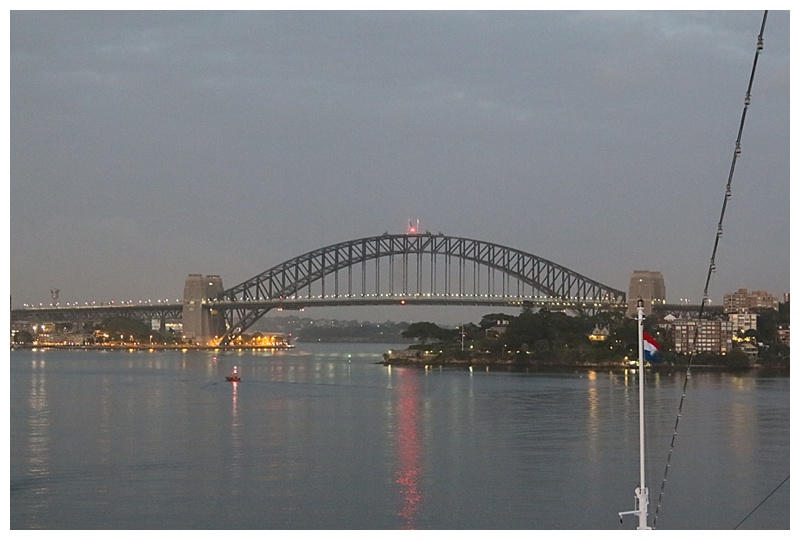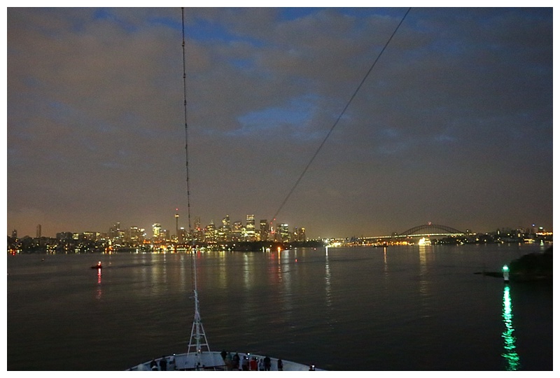 We were on the Oosterdam at the OPT, to be leaving on Friday, 30th January for New Zealand. However, to our surprise, the Captain decided it was too risky to take the ship out into the Tasman that day and we ended up spending the night at Circular Quay with some wonderful photo opportunities. Arrived home this morning after a lovely smooth sail across the Tasman.