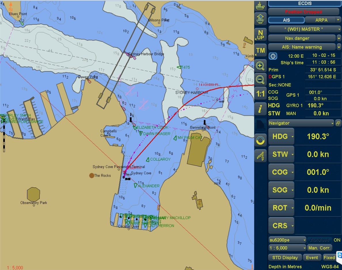 4 a.m in the morning and the glow of the lights of Sydney greet me on the horizon as I arrive on the bridge. We are due to embark our pilot at 5:15, following one of P & O Australia vessels, the “Pacific Pearl”.