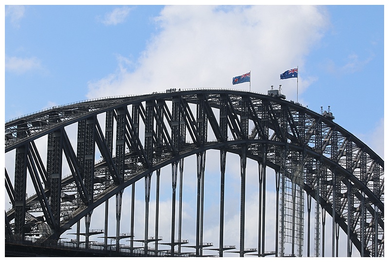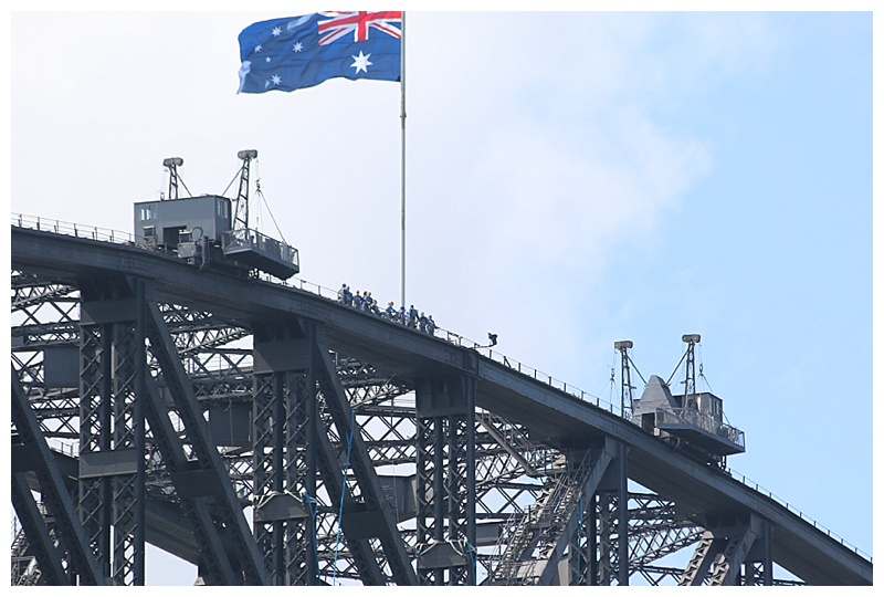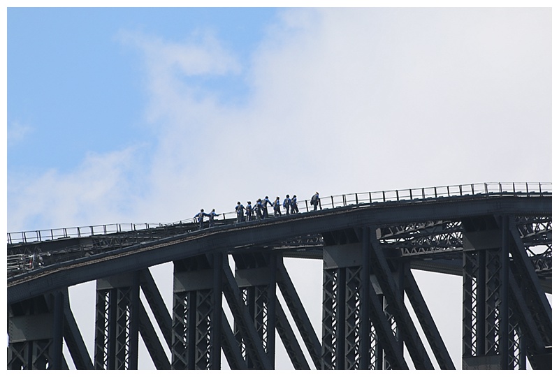 Yesterday, one could clearly see groups, (some of them ours), on the Sydney Harbour Bridge climb.  Starting from one of the buttresses, they walk to the top of the bridge,  They have guides and wear safety clothing and lines.  Brave souls, although the view must be spectacular.