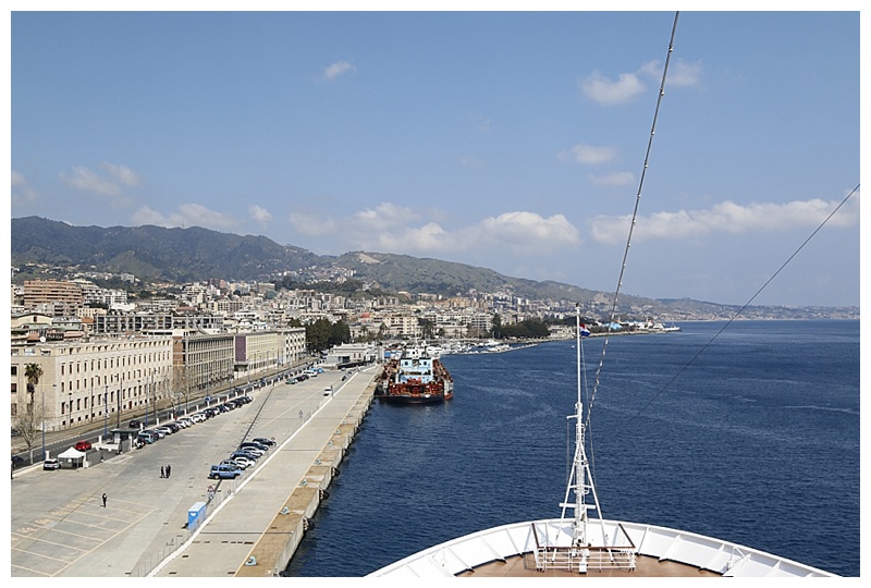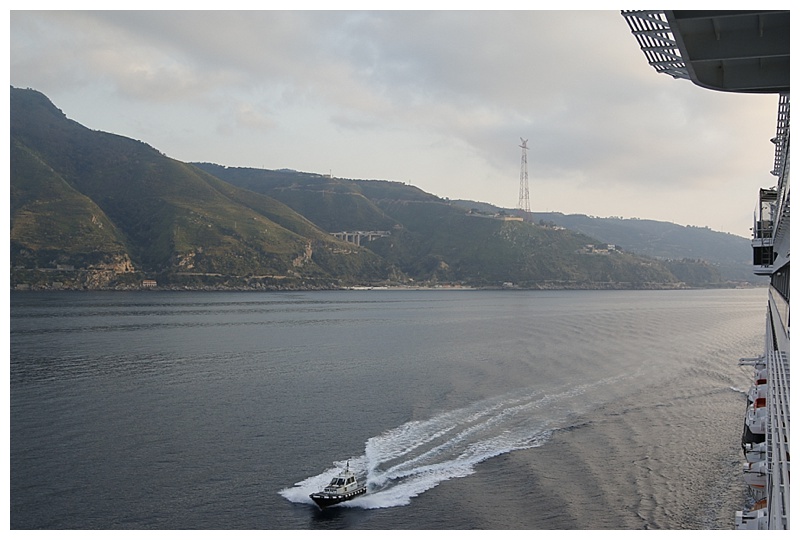 Calm seas and light winds accompanied us as we made our way from Katakolon towards Messina. Our route took us towards the ‘toe’ of Italy and then a turn to the north, into the Messina Straits, on which Messina lies.