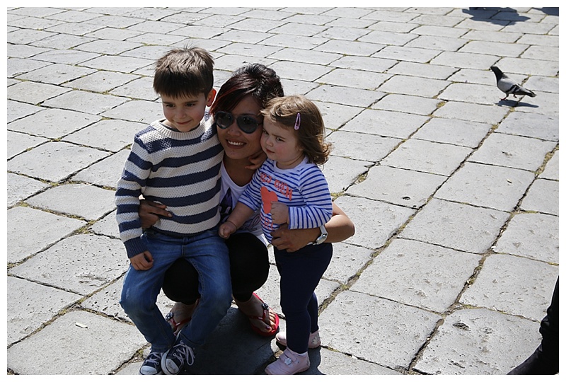 The square is full of our guests and crew, many of whom ask for photos with the children, here is Annie, who works in the Lido restaurant and loves them dearly.
