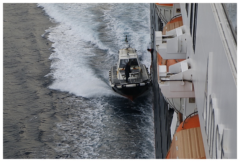 Finally, after a long walk, back to ship and getting ready for departure. Across the Straits, into the northbound lane and heading for Naples, We pass Stromboli, the volcanic island at around 9 p.m. however there is nothing to see, no glowing lava this time, I’m afraid. Here are those photos of the pilot disembarking.