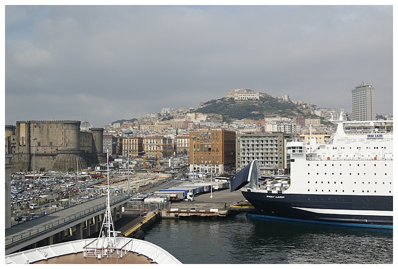 Naples, is rather an unattractive city when approaching from the sea, heavy industry, dockyards, cargo and ferry berths and an imposing fortress, the Maschio Angioni, which dominates the view over the harbour. It does however have a nice passenger terminal, which is a short walk from the berth. During the approach, one passes the Island of Capri, home of the rich and famous in the 60’s.