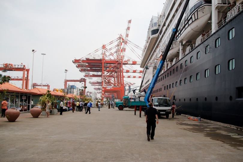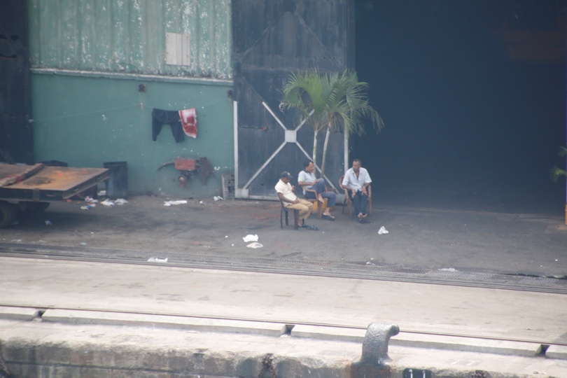 An uneventful crossing of the Bay of Bengal although, with the mysterious disappearance of the Malaysian Air flight, we have been keeping a very good lookout for anything strange. We docked at 7:30 this morning on a warm and humid morning. We came into the ‘old’ harbour, the original one, that is. For the past 3 years there has been a vast amount of construction taking place, a new container-ship harbour to the west of the old. As we enter our old and narrow entrance, I remarked to the pilot that last year, when we came here, there were no ‘box boats’ in the new, however this time, there are; apparently it opened to shipping last August. I used to call here in the 70’s, on cargo ships, this being one of them, slightly different to present mode of transport 😎