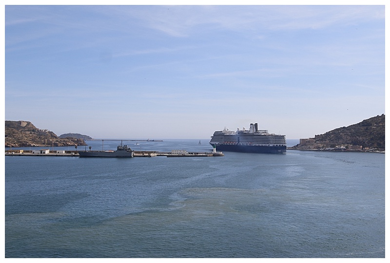 Cartagena boasts a beautiful natural harbour, nestled in a bay, surrounded by precipitous cliffs. It has a Cruise berth and a Naval base, while on its outer peripheries, a thriving cargo port.