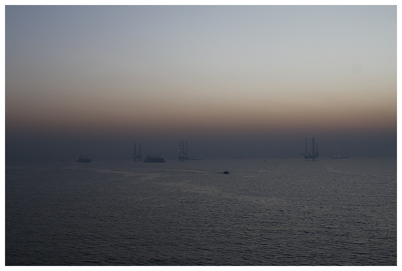 Sunrise as we sailed up channel, passing anchored ships and rigs while we did so. They ‘work’ cargo like this, discharging cargo into or out of, barges.