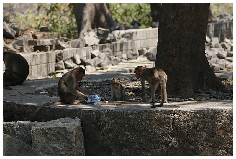 There are monkeys, which will snatch water bottles and, surprisingly, have learned to open them.