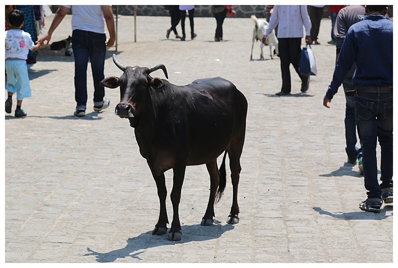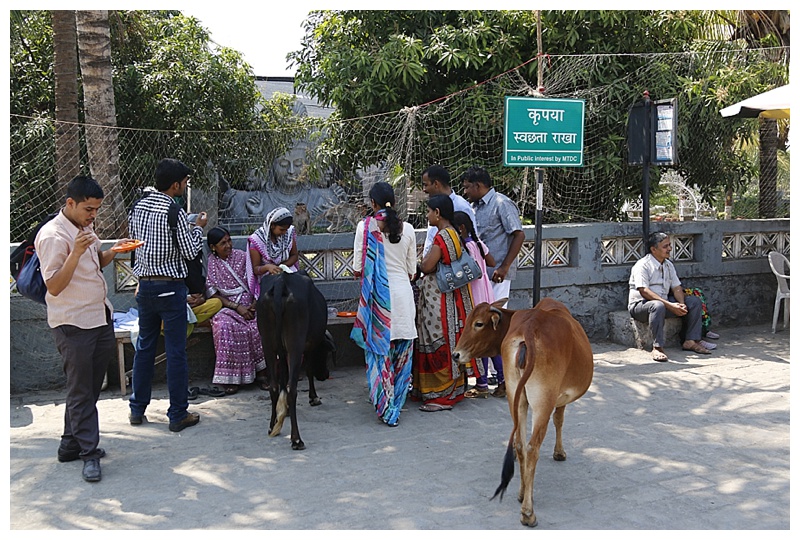 When one reaches the terminus, the inevitable stalls await and a long walk, up 120 steps, in the heat, to the caves themselves. We pass cows and goats, the cows being sacred to Hindus and they regularly receive morsels of food from the passing Indian tourists.