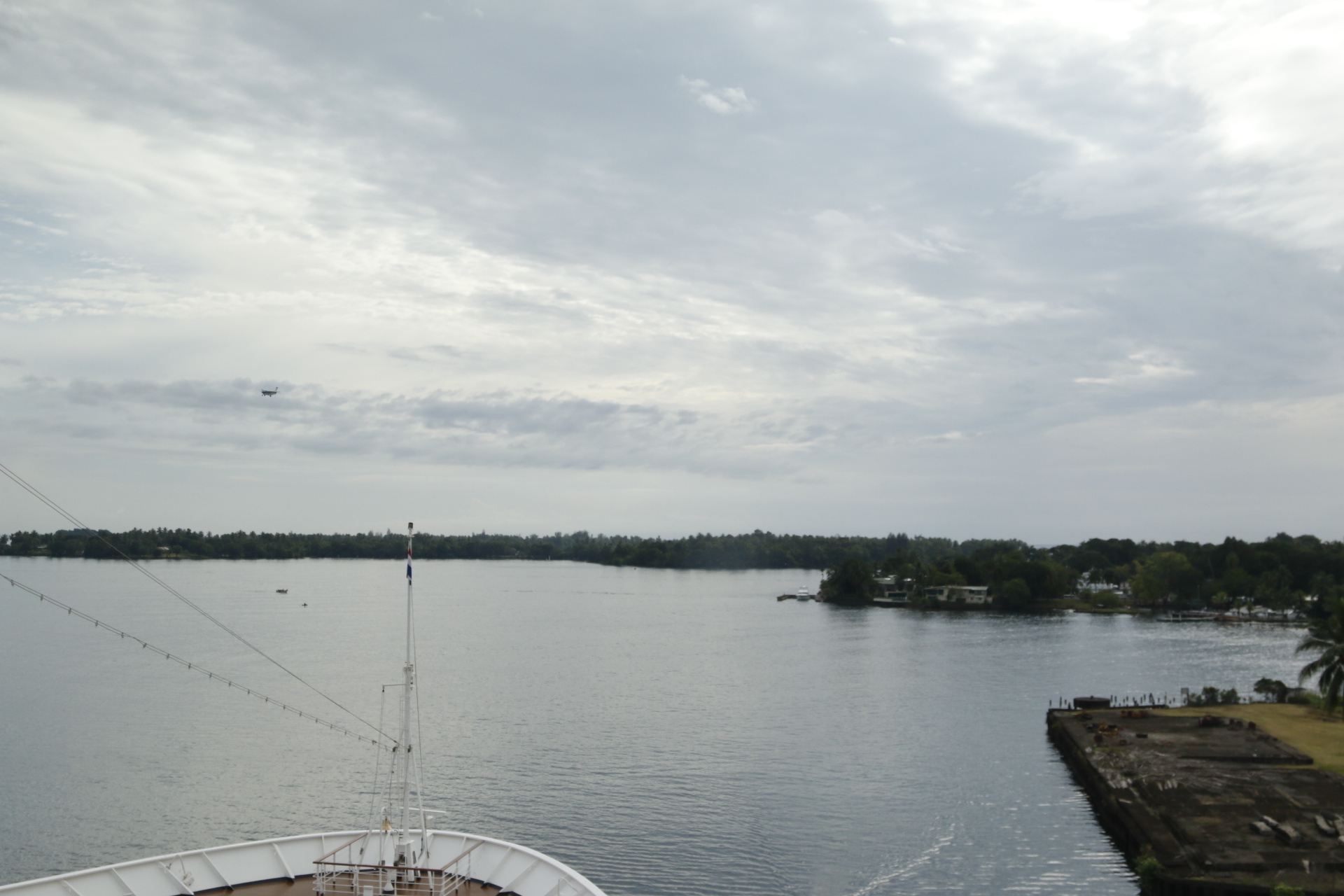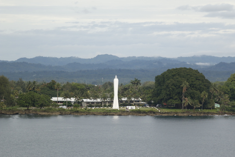 A hot and humid morning, in the distance the mist-filled valleys of the mountain range ahead of us.  Over on our port bow lies Madang, with the prominent ‘Coastwatchers’ memorial lighthouse on the headland.  On our starboard bow, palm fringed jungle and islands.  (The Coastwatchers memorial is for those people who stayed behind enemy (Japanese) lines and reported on shipping and aircraft movements to the Allies.  The majority were Australian, however some were native New Guinea’s.  If discovered, they were executed).