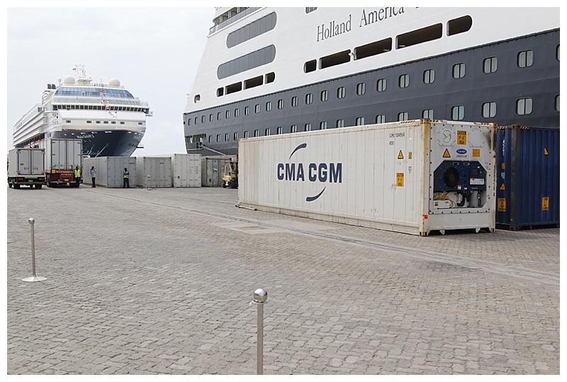 Docked at a magnificent terminal, marble floors, shops and capable of 2 mega cruise liners , a total of 14,000 passengers, at the same time.