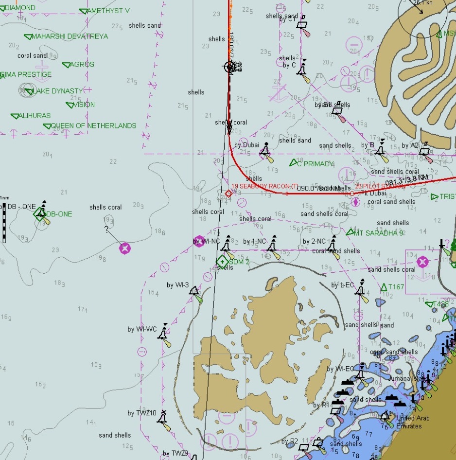 The 23rd broke cloudy, overcast and raining, not one would quite expect from an area which is mainly sand and desert.  The wind was gusting 35 knots as we made our way through the hundreds, (literally), of ships at anchor or slowly steaming, waiting for ‘orders’.  Every ship of every size was around, Container ships, Tankers, LPG carriers, rigs, you name it, it was here.