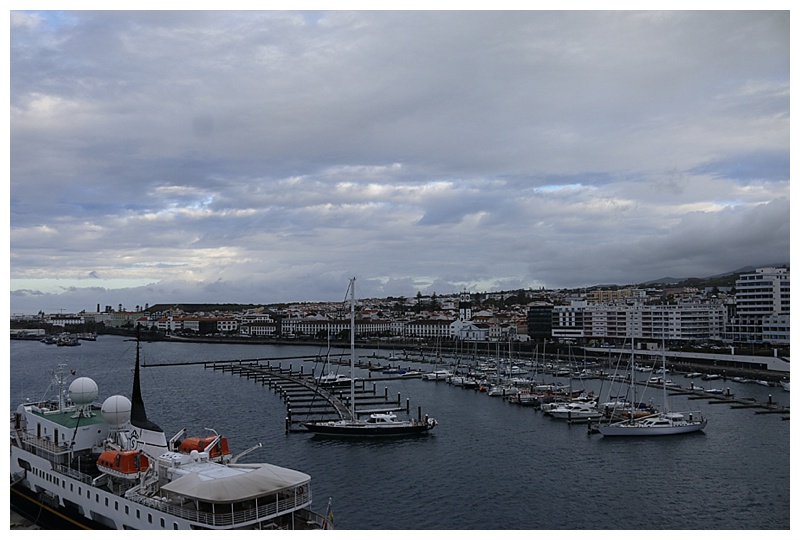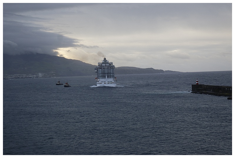We approached Ilha De Sao Miguel, on which Ponta Delgado lies in the early morning of the 22nd. I had asked for an early call, although it was not really necessary. I had slept fitfully, the movement of the ship in the large swell and the howl of the wind outside my cabin window was a portent of the weather outside.