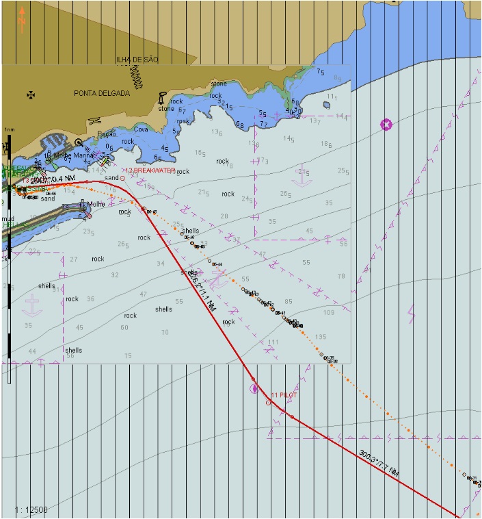 During all this, we tried to embark our compulsory pilot, however it took an age due to the waves and wind; I concentrated on the approach, while Friso kept me informed on our pilot’s progress. He eventually reached the Bridge when I was almost in.