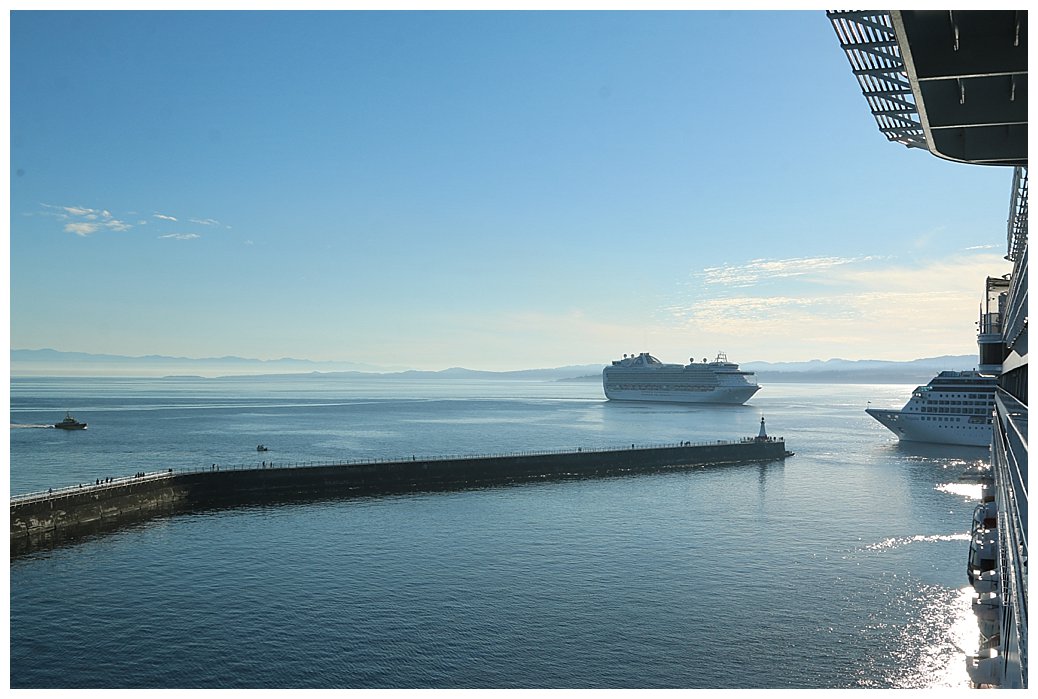 Normally, the “Pearl” enters first, however she was late and we took lead, followed by the “Ruby” and finally the “Pearl” We 3 and others, call in Victoria, Canada for a purpose and not only because it’s a wonderful destination.  We also have to comply with the Jones Act.