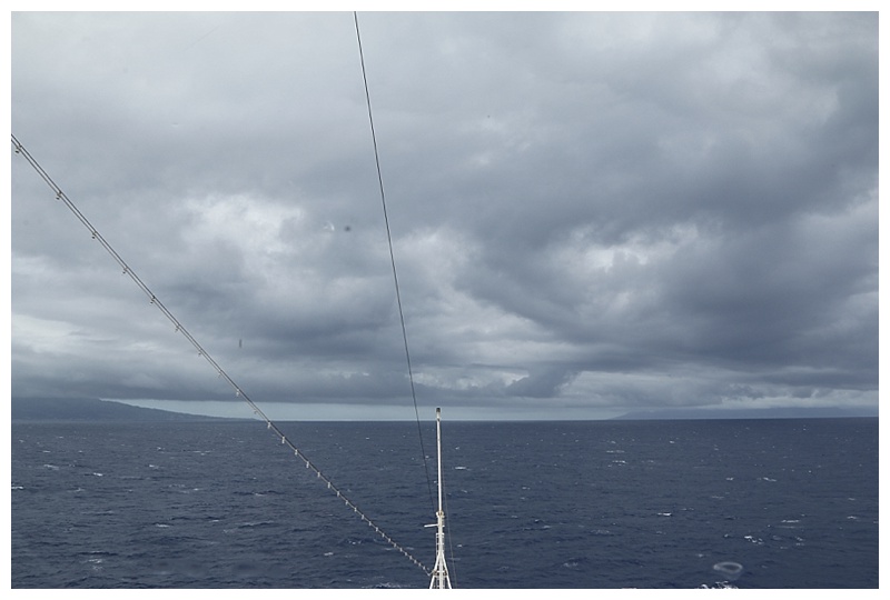 As predicted, there was a considerable change in the weather after we had departed Nuku Hiva. Stronger winds, a higher swell and clouds, at times dark and leaden, as they were as we approached Papeete.