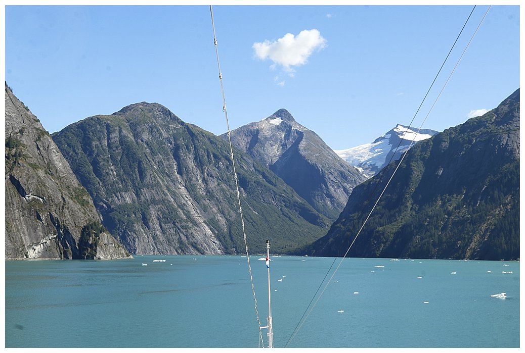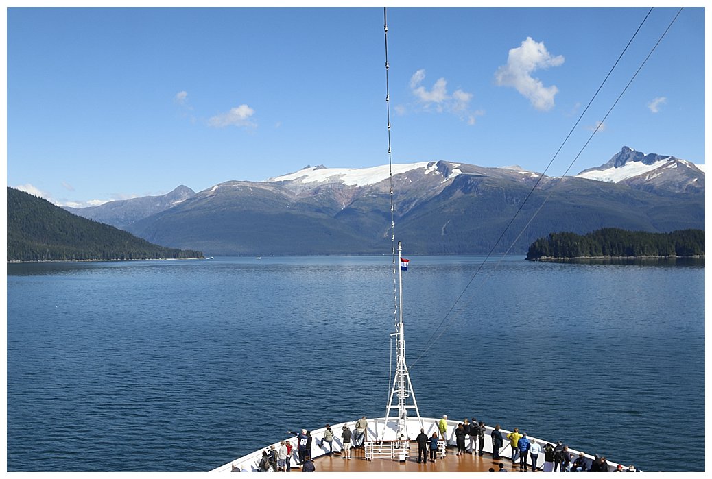 Having embarked our pilots, (they stay with us all the way through to Ketchikan), we increase speed and make for Tracy Arm, a majestic fjord. We do some whale spotting as we head north, however although we sight a few, they are not in the large numbers we have seen previously, the ‘feed’ must have moved.