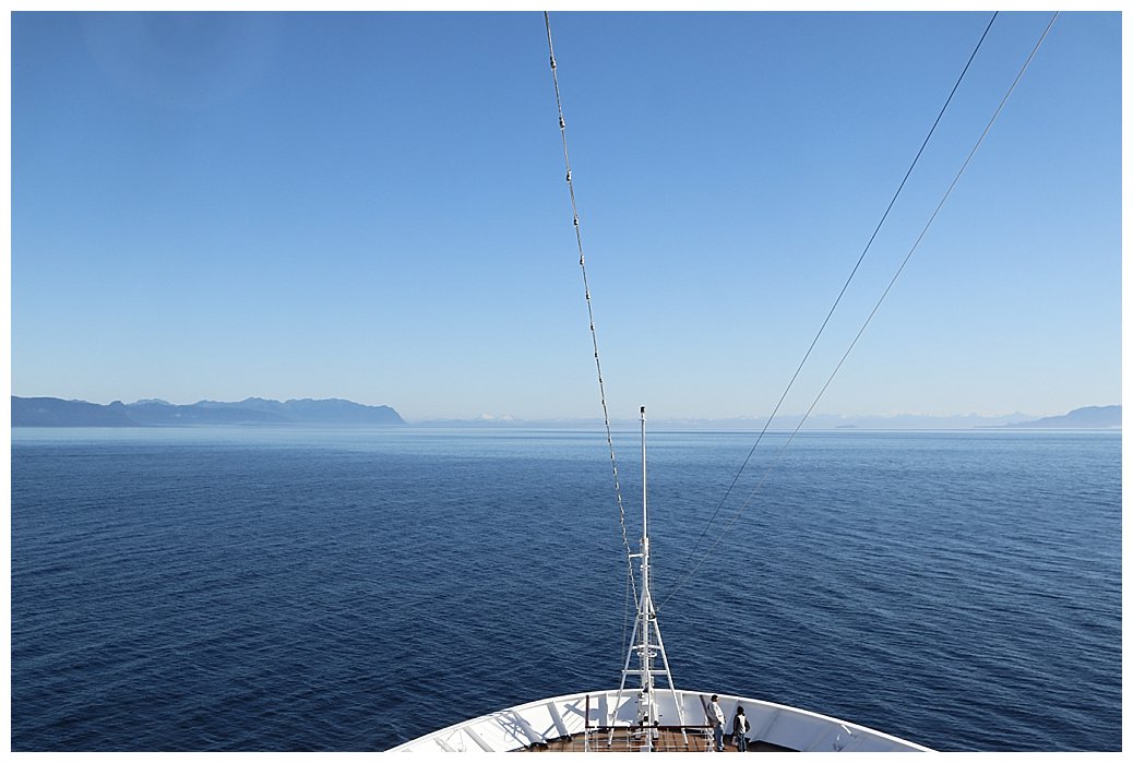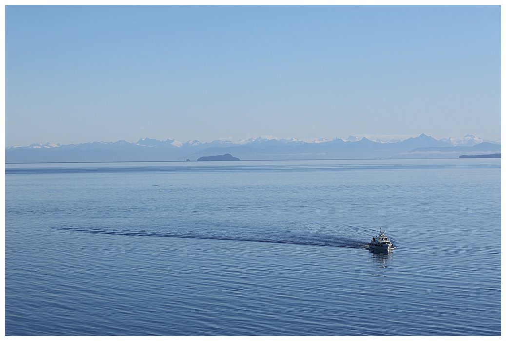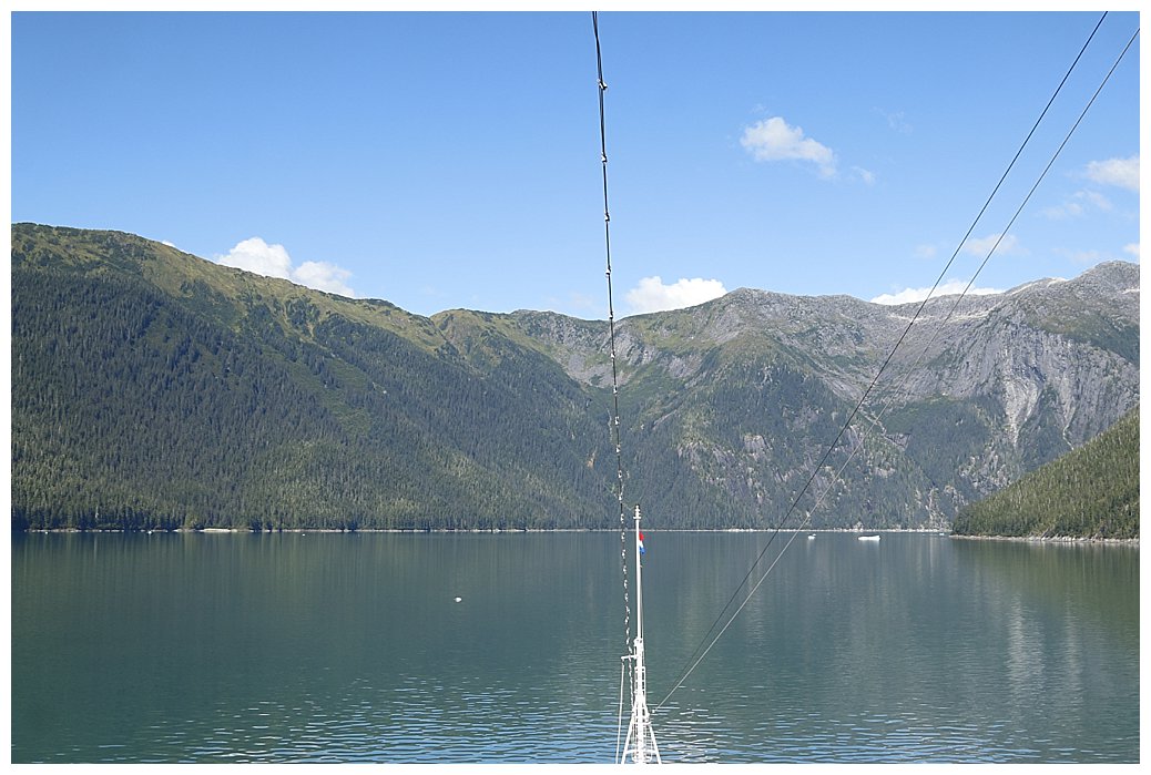 As we make the turn from Chatham into Frederick Sound, its like another planet; the wind drops, the sun bursts out and the vista before us is breathtaking, Alaska in all its beauty.