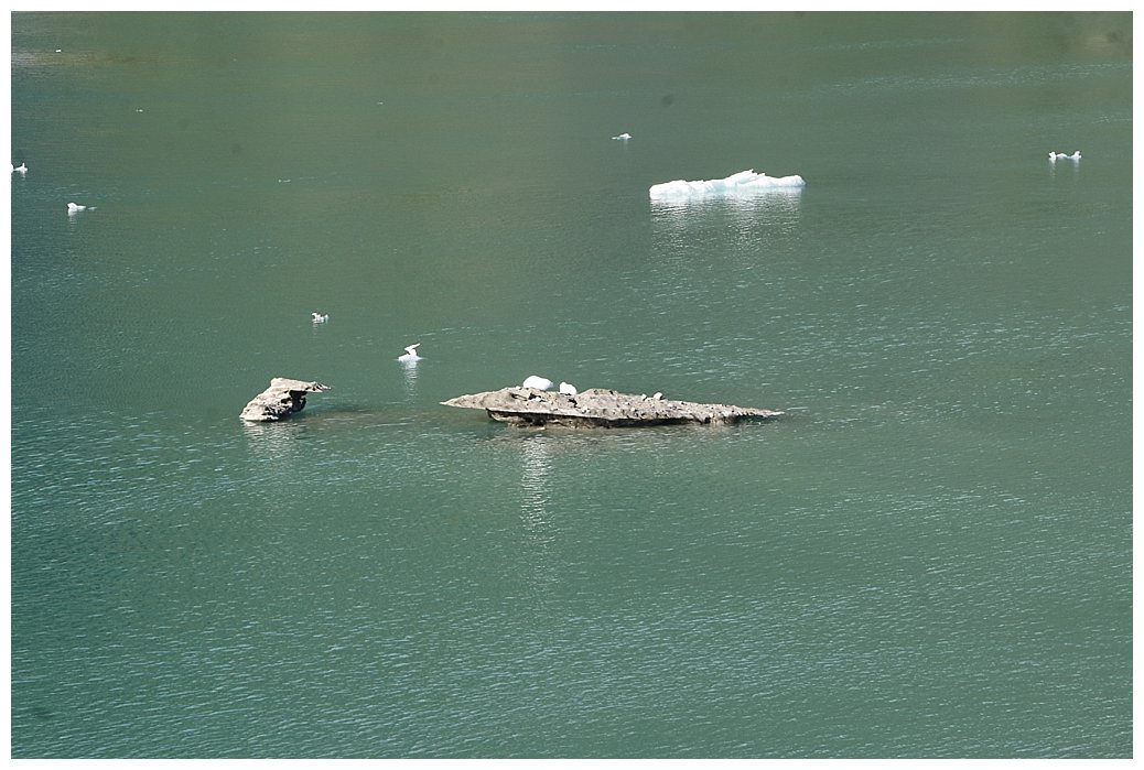 Crossing the ‘Bar’, the site of the terminal moraine, (the ‘old’ face of the glacier), the depth changes, over 400 feet before we cross to 80 feet at the Bar and then back to 400 again.