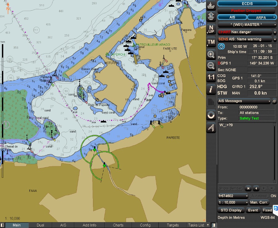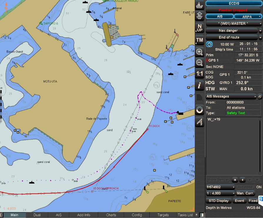 I mentioned yesterday about our approach to the port and, knowing by now that some of you enjoy the ‘technical’ aspect of our voyage, I downloaded 2 screen shots of the maneuver.