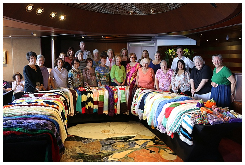 During our sea-days, Henk and I attended the Linus Project photo shoot, complete with 55 blankets and some outstanding bonnets for the little ones.