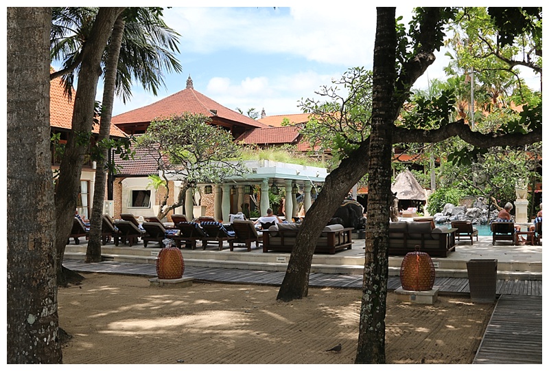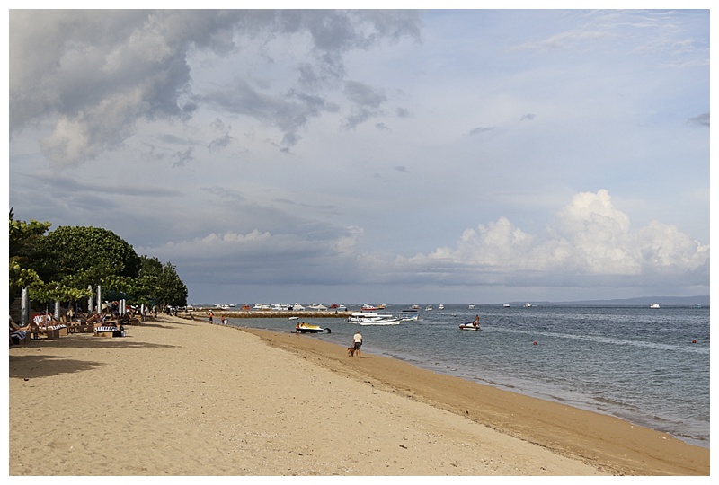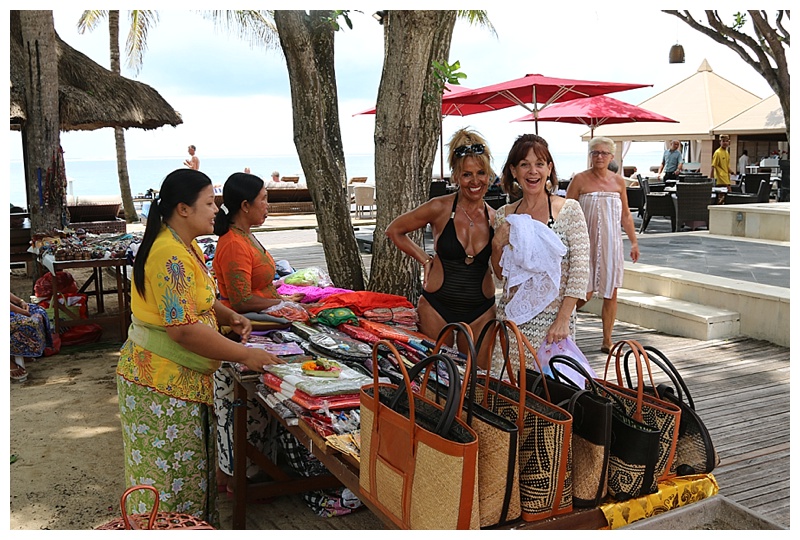 Gerd and I had arranged that I had some time off on Day 1 and he went diving on day 2. So, having seen many of the local sights on our previous calls, Karen and I, along with friends, decided we would have a quiet ‘beach’ day and set off towards Sanur, a town a few miles south of Benoa, (as the crow flies), but around 25 minutes by road. It is a popular area for Europeans, mostly German, Dutch and some from Eastern Europe. It has lovely beaches, shopping 👿 and hotels and it was the Puri Santrian hotel that we stayed for the day. Colin and Paris had stayed there before and an arrangement with the manager, whereby we made a deposit of $160 U.S. and anything we ate or drank, would be deducted from it. After a marvelously relaxing day, we walked away with change 😀