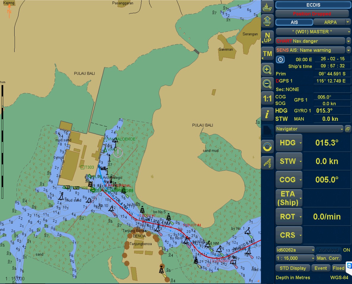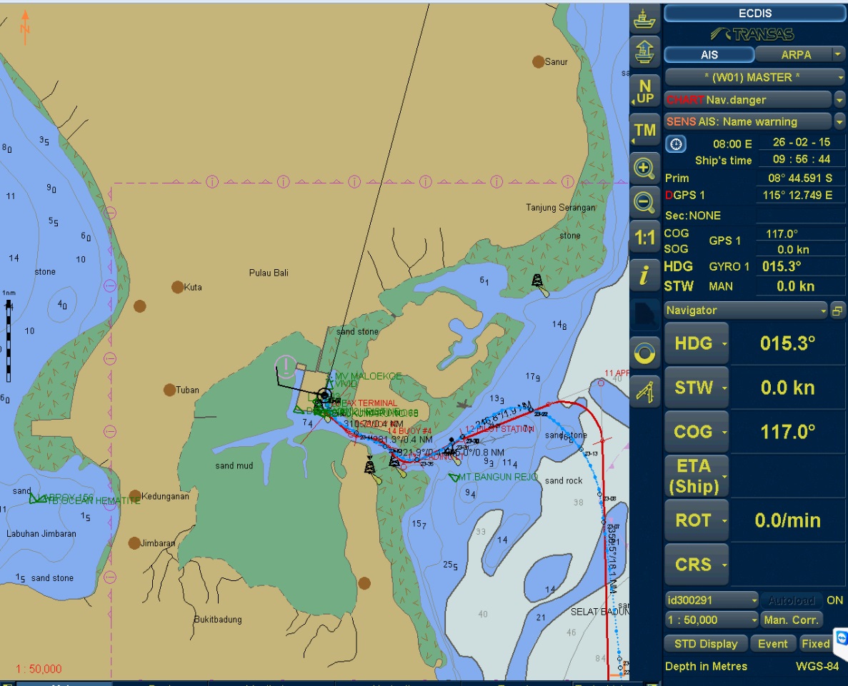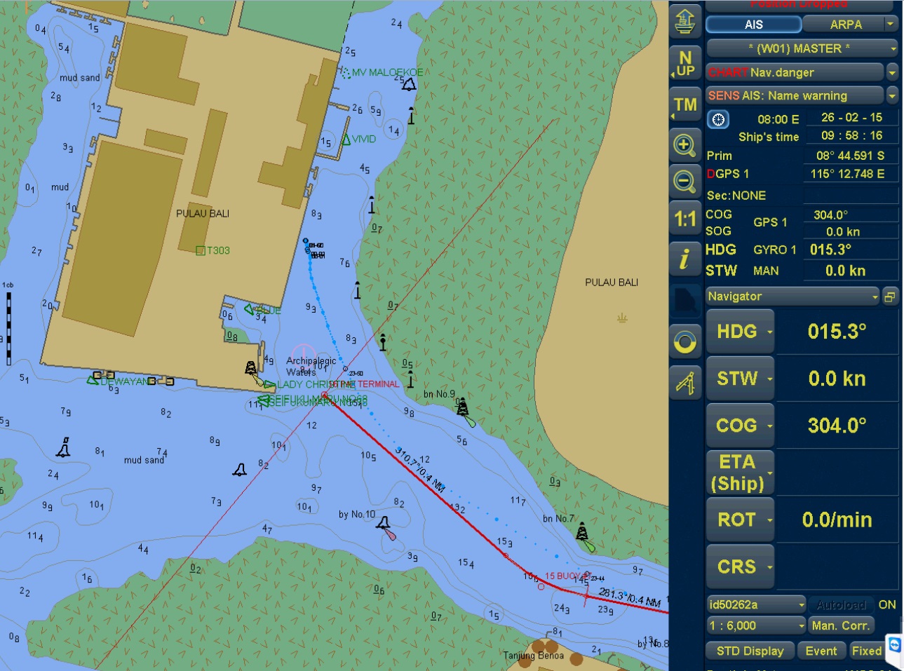 Soon we will be on our way to Semarang, on the north coast of Java. We have to back out of the berth and then swing through 90° before we can transit the channel again. Our route will take us through the Lombok Straits and past the eastern end of Java before paralleling its north coast.