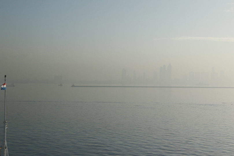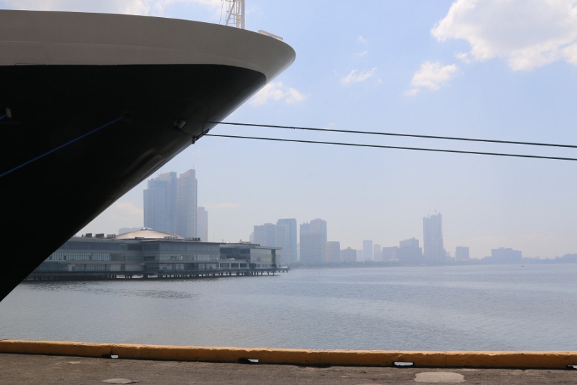 Manila appears through the haze, a mix of humidity and some smog, which clears later in the day. The pilot boards and we exchange details about the ‘Amsterdam’ and our docking plan; (fortunately he leaves it up to the Bridge team and he spends time consulting his mobile phone, on which he has a chart programme). Through the breakwaters and into the harbour itself and then a ‘wheelie’; a turn through 180º and backing in towards the berth.