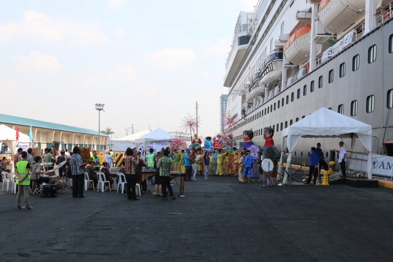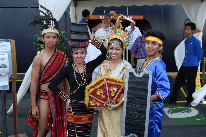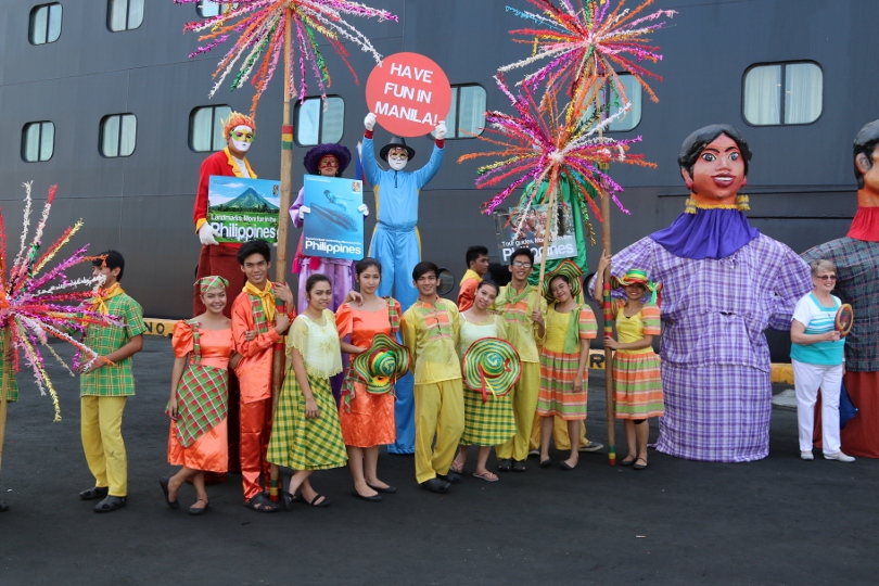 There is a large crowd to greet us, Manila and its environs provide much of our Filipino crew and there is a close affinity with the port. There are dancers, musicians and groups in national costume with much waving and dancing. We also have almost 1,000 wives, children, grandmothers, granddads, aunts, uncles, visiting us. Many have travelled hundreds of miles just to get here and see their family members, it’s a happy and joyous occasion; heaven knows how many photos I posed for, it must be near 100, however it was fun to see them all so happy.