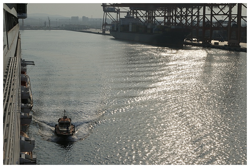 Departing at 5 p.m., Friso, our Staff captain took her out, backing clear of the berth and then swing to starboard, bow towards the concrete.