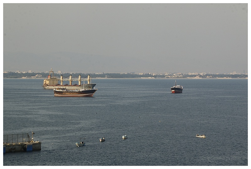 To our south, a convoy is bound north-east; 9 cargo ships, of varying nationalities and size, are being escorted by 2 warships. The cargo ships are the ‘plodders’, relatively slow, they need their ‘shepherds’ to accompany them, a deterrent from the ‘wolves’ that lurk in wait, although far fewer in number, no-one is taking chances. It hearkens back to days gone by, the convoy system across the the Atlantic, when the ‘wolves’ were U-boats, except now they’re skiffs.