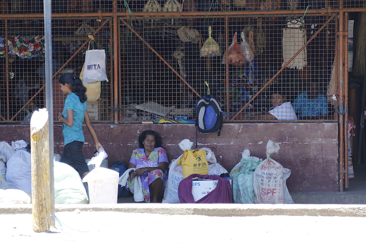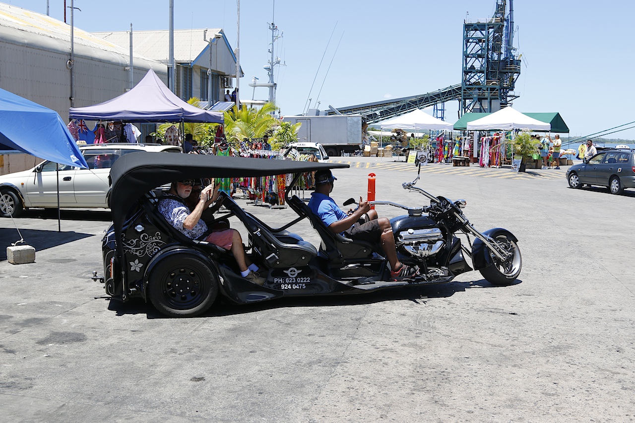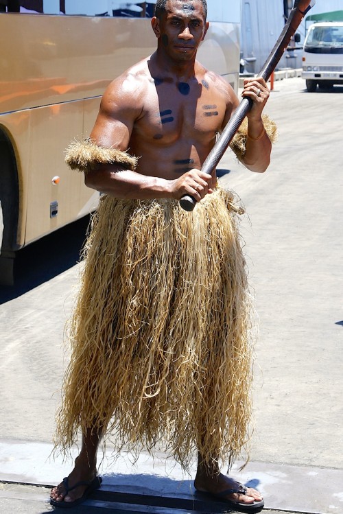 The Fijians greet everyone with a resounding ”Bula Bula”, basically their ’welcome’ and they are extremely friendly, talking to anyone they can. They were also a fierce warrior race, to which European explorers can testify to and on the pier are two such men, dressed to ‘kill’. Fortunately these ‘natives’ are friendly and only too pleased to let me take their photo; such was their enthusiasm that they insisted on me being with them and so, wielding a war-club, I did so.