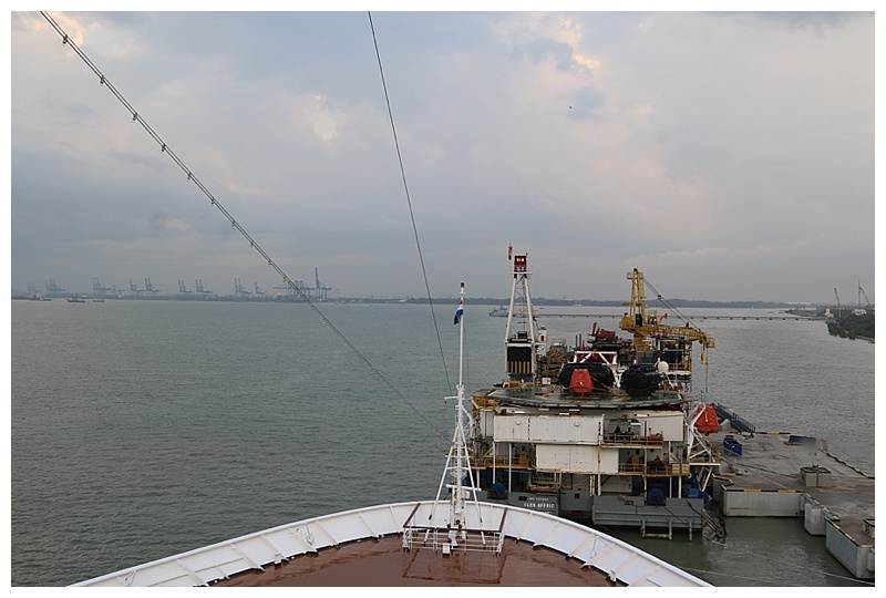 Leaving Singapore and on our way towards Port Klang, I took some photos for you. It was only when I downloaded them for the blog, that I realised I had 2 pesky spots on each shot, (they turned out to be on one of the mirrors), however a spotty photo is better than none 😉
