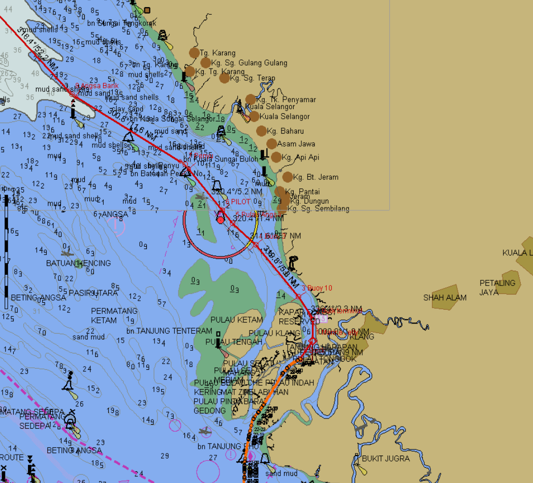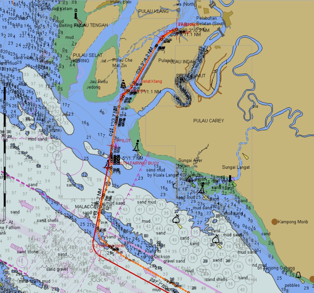 Port Klang lies to the north of Singapore and, once again, we had supplemented Bridge teams to assist in the heavy shipping traffic. It comes in ‘spurts’; as soon as one passes a port, it eases off, until one nears the next and then it starts again. Port Klang is the largest port in Malaysia and lies on not so much a river, but a channel between outlying islands. It is strange insomuch one can enter via one channel and then continue north and out of another; this is what we will do.