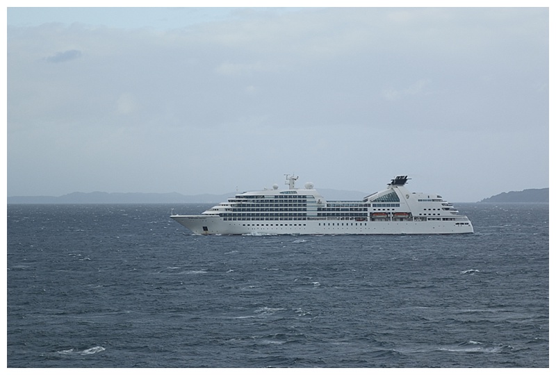 The Seabourn Odyssey diverted to Auckland and timed her arrival for our departure, she would take our vacated berth, while the Celebrity Solstice spent a day at sea, making for Waitangi. She is now anchored with us in relatively calm conditions.