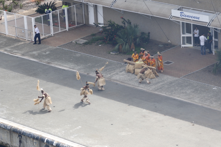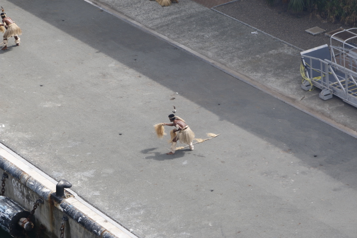We were greeted on arrival by a troupe of local dancers, once more dressed to ‘kill’ and the port-side balconies and decks  were packed with guests as Friso brought her in.  (He leaves us in Sydney, so I’m giving him opportunities to notch up a few more ‘drives’)