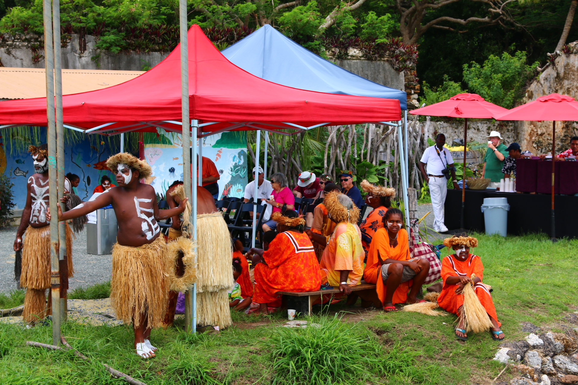 With my trusty camera in hand, I rode a tender in and was greeted by yet more locals, dancing and singing in a strange tongue, nevertheless they presented a spectacular sight. A palm-garland was placed on my head, as were all guests when they alighted.