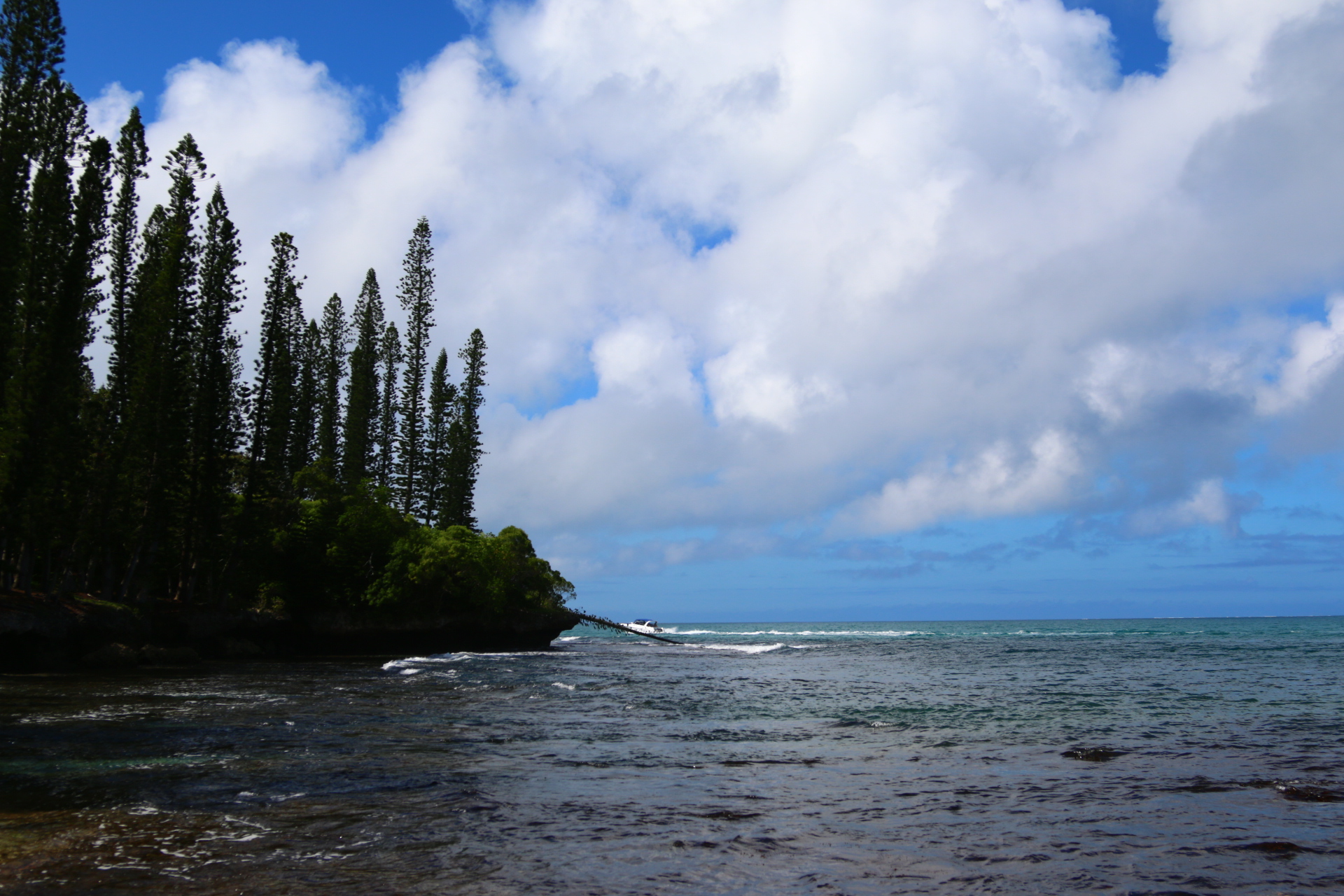 We spent the night between Noumea and Iles des Pines, on which Kuto lies, slowly cruising at 11 knots, making our way through yet more reefs and tree-lined islands until we reached the anchorage off Les Pines; it is aptly named, as these towering trees are on the smallest of islands and on the main one too.
