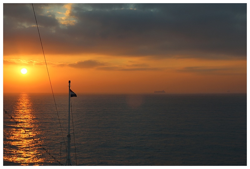 It’s been hectic these past few days, hence the lack of a post.  After our transit of the Suez Canal, we spent a day slow-steaming for the port of Ashdod, Israel, timing our arrival for 6 in the morning.  A beautiful sunrise greeted us as we sailed into the harbour.