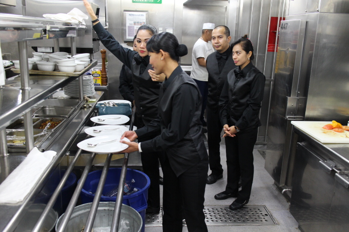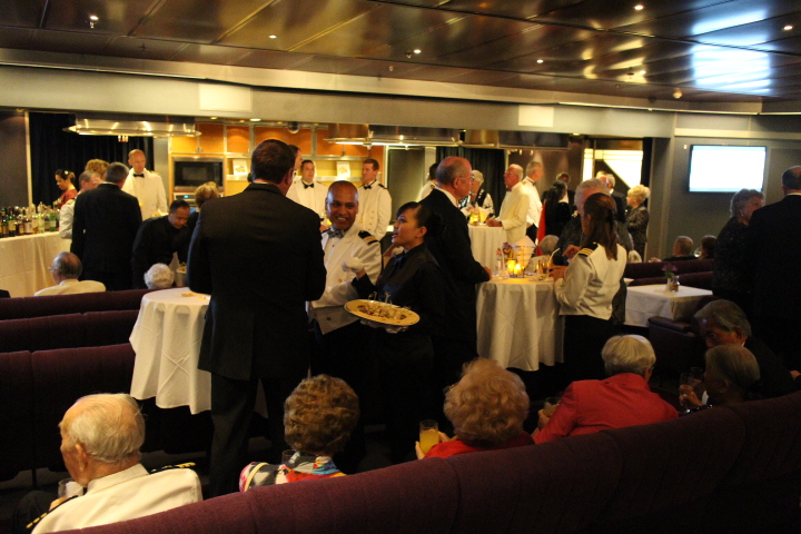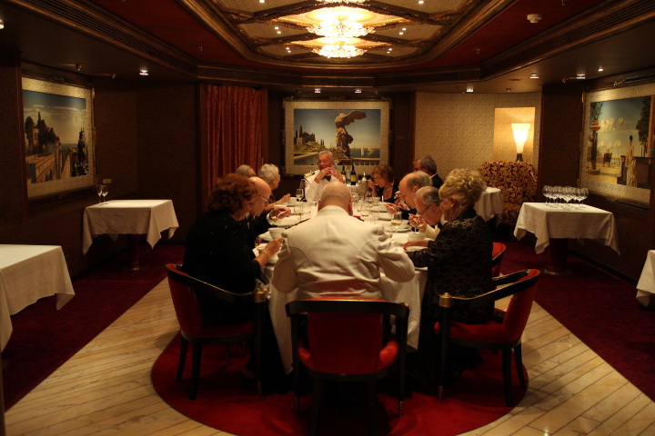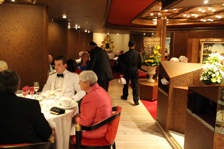 I have previously mentioned the Captain’s dinner and yesterday evening was such an occasion. On each dinner, approximately 50 guests are invited to participate, if they are sailing the full Grand World voyage. Over the course of a World cruise I and officers will be ‘eat our way round’ the world 😉 . We will have 14 dinners, as we have approximately 700 guests who are circumnavigating the globe.