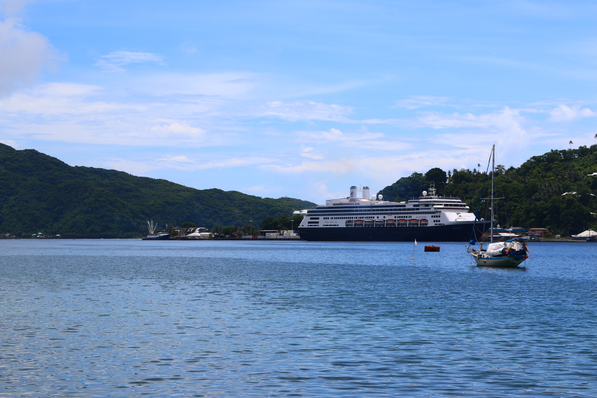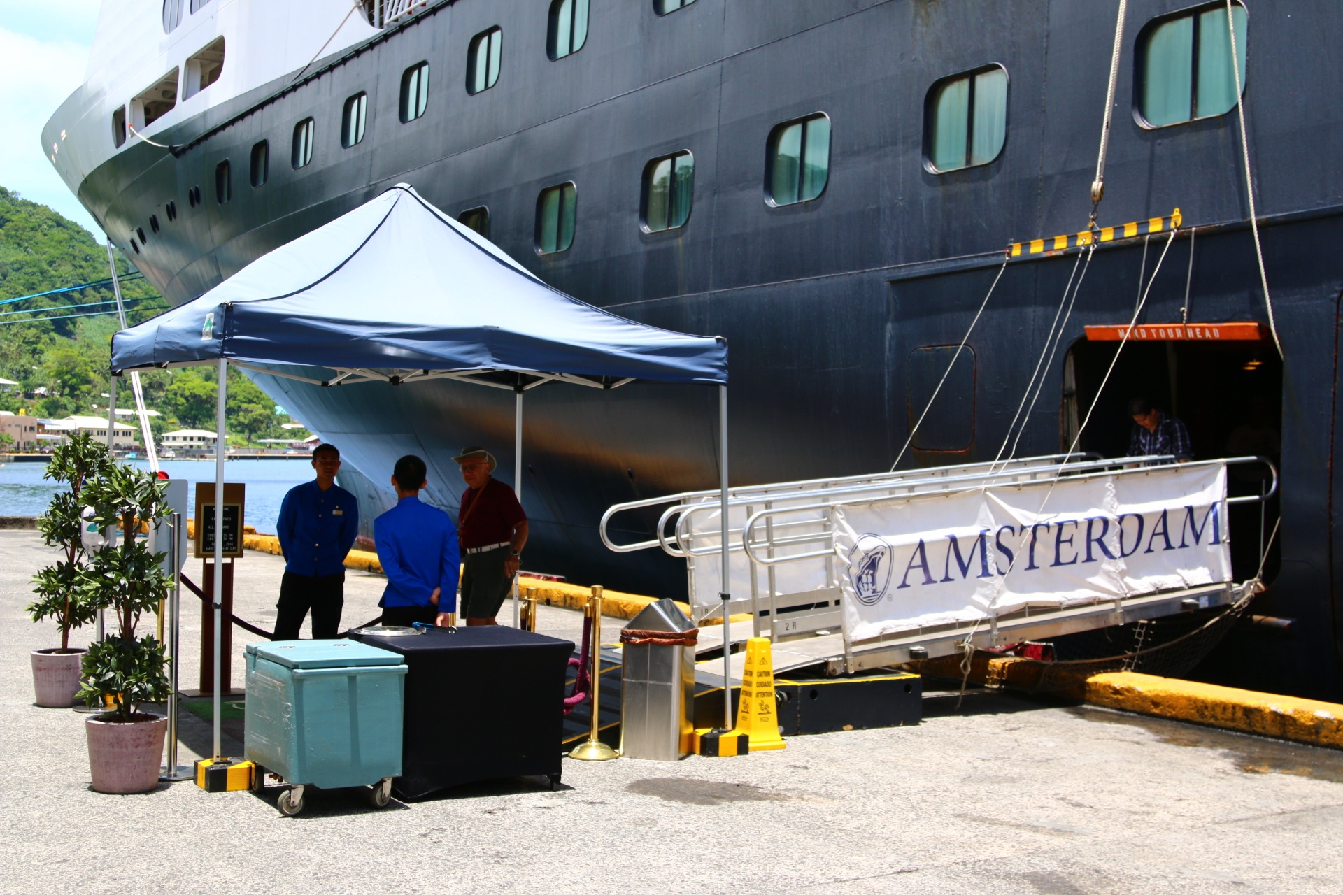Back to more important matter; we docked in American Samoa this morning, Pago Pago to be precise. One might expect that, because of the ‘American’ nomenclature, we would see tall buildings, wide avenues and masses of vehicles. Not so, the buildings are mainly 2-storey, the roads are narrow and yes, there are traffic jams, however not the type that we would be used to. In fact, the longest queue that I saw was for the petrol, (gas) station.