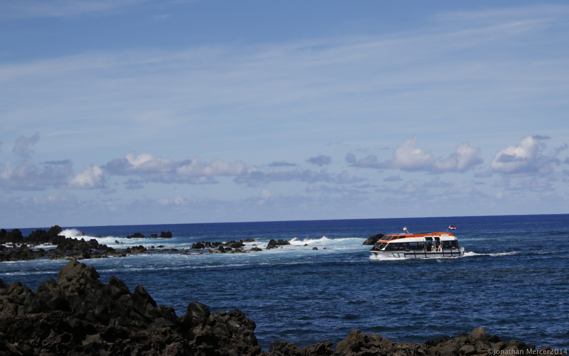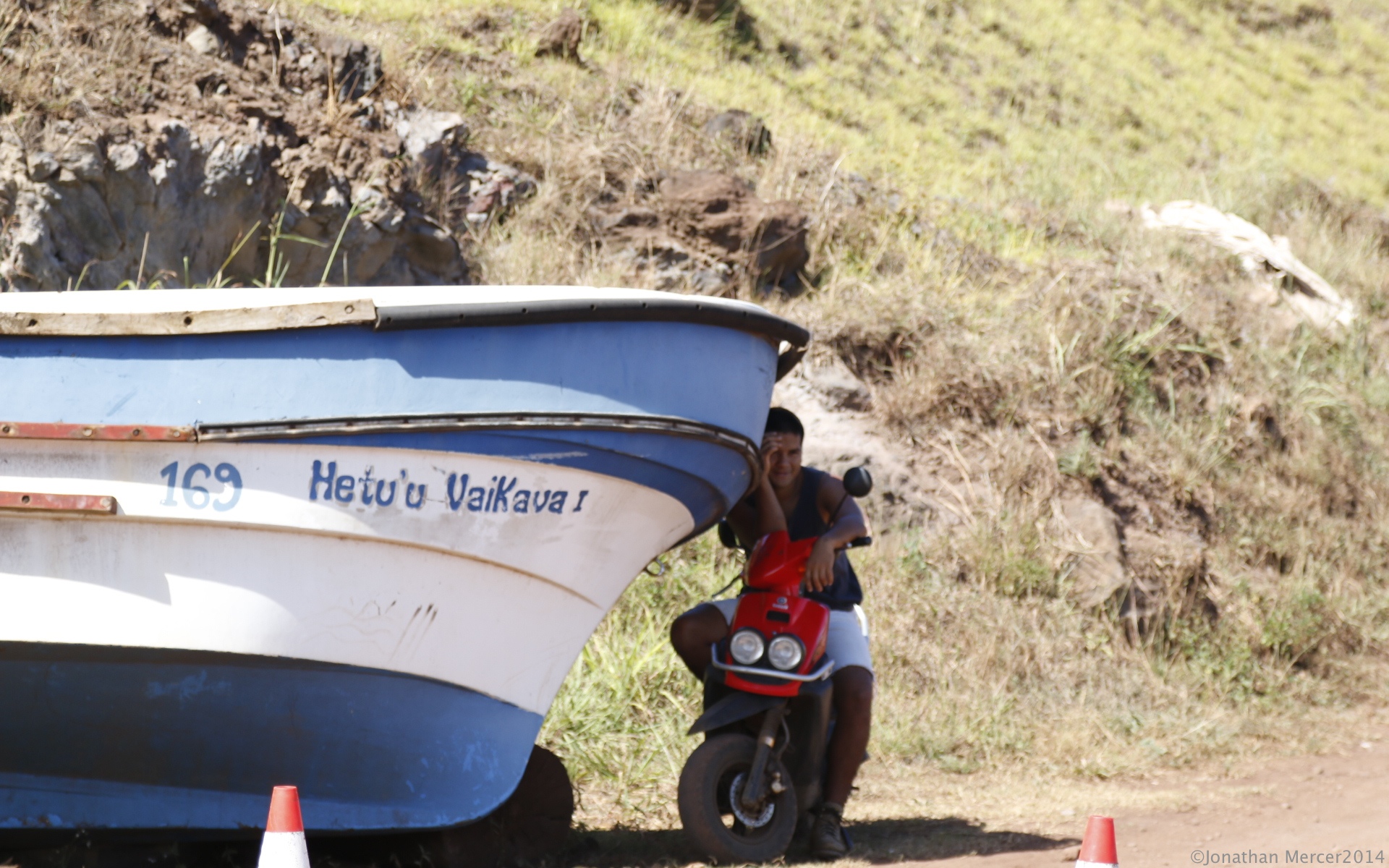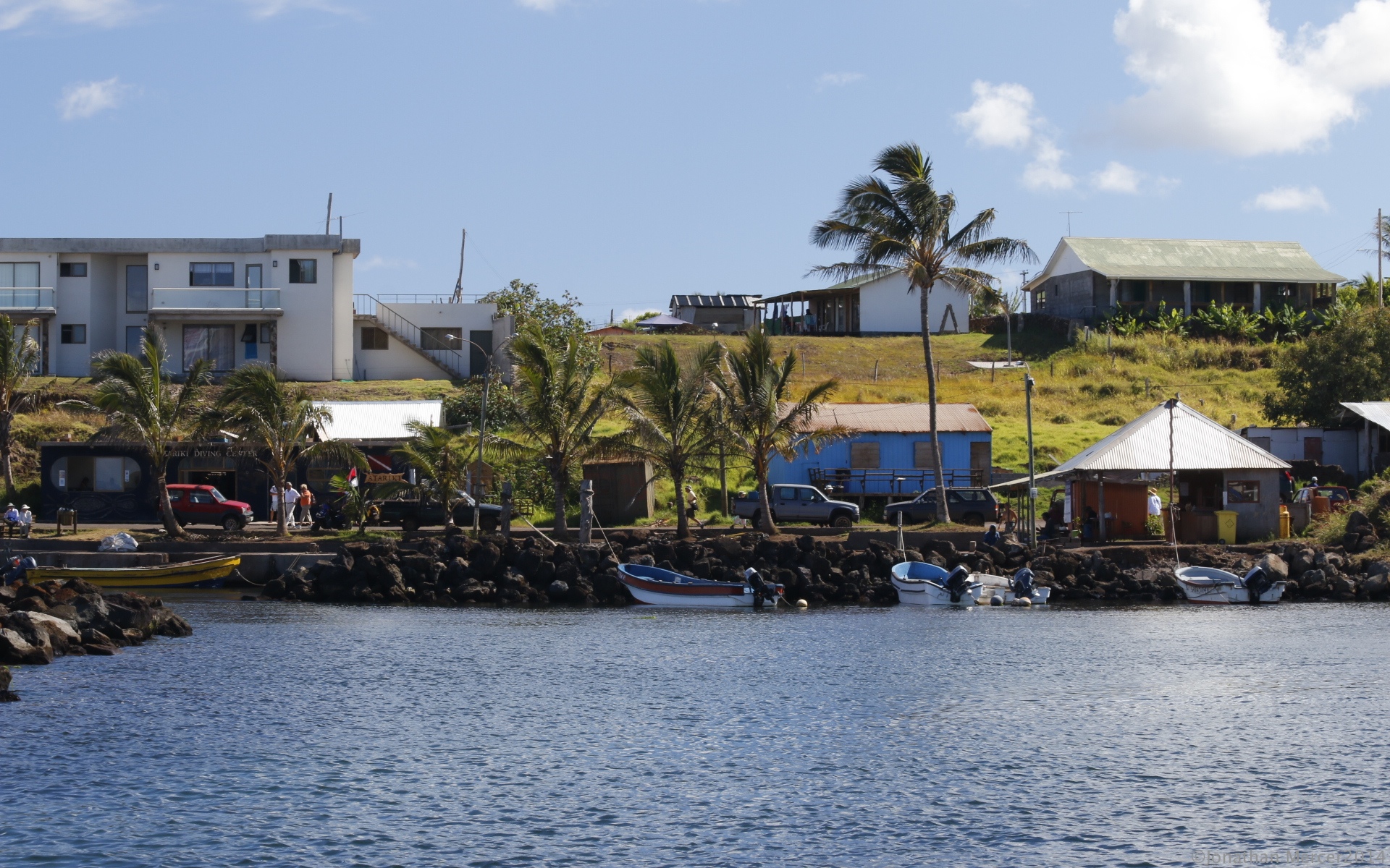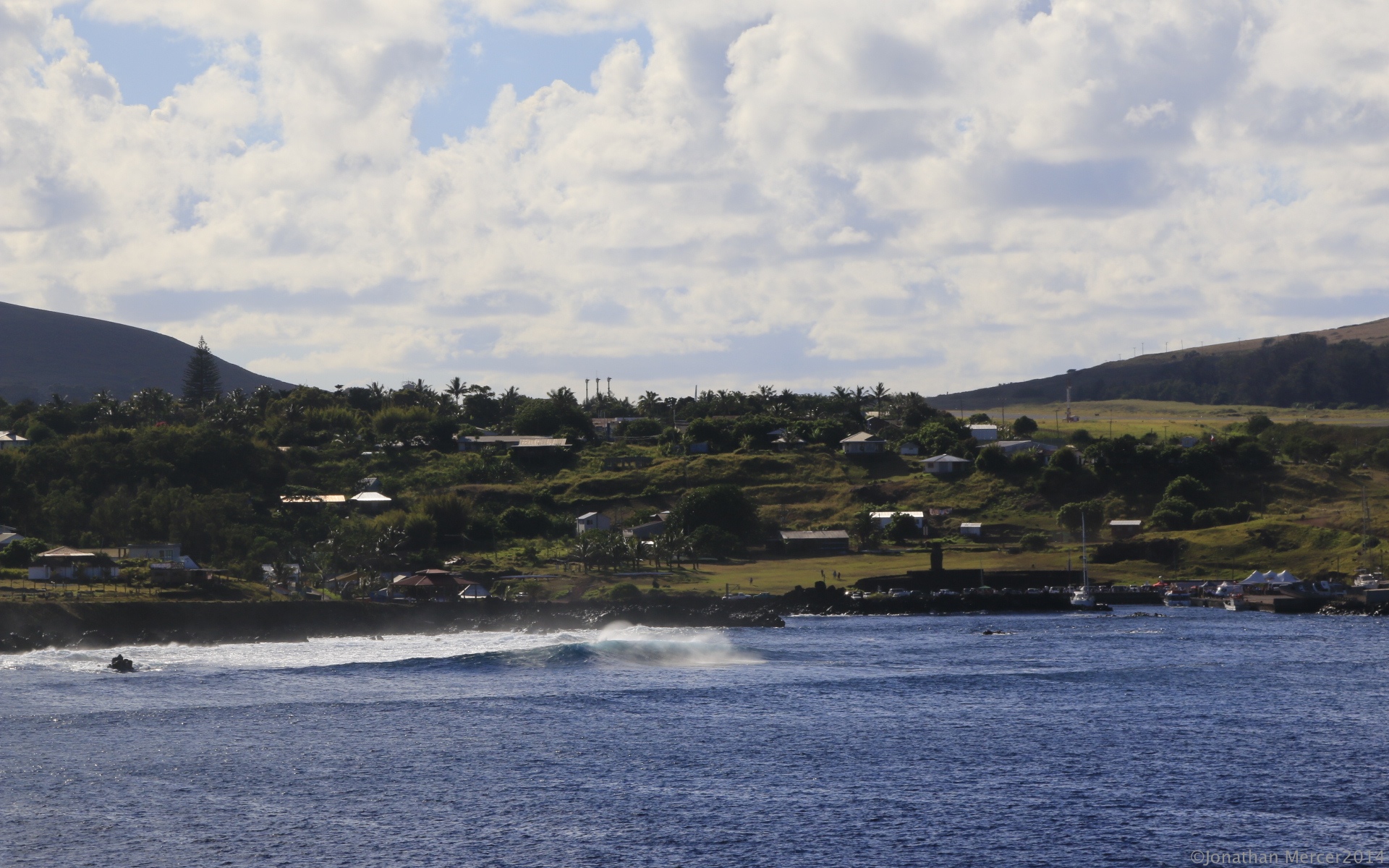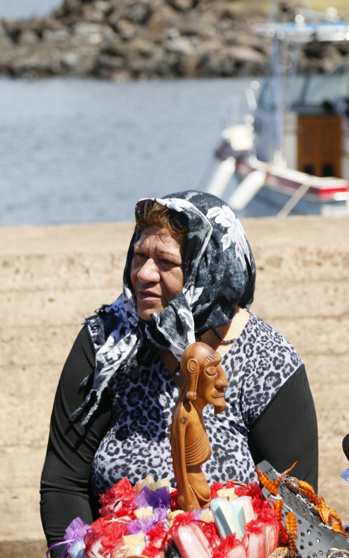 There is a swell running into Hanga Roa harbour, quite manageable by previous experiences and the tenders run incessantly, taking guests ashore, where they join their tours. It’s hot and with a UV warning of 11, everyone is covered up and wearing hats.
