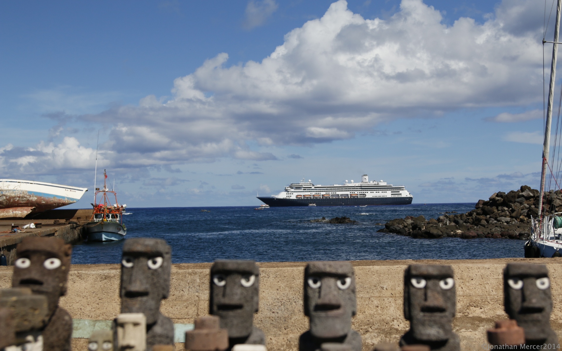 I took a jaunt ashore for this blog, photos are a necessity, I probably had more photos taken of me than I took myself though 😎 . The inevitable stalls greet you on the quay, trinkets and of course, miniature moai. We have tents and ice-cold water and lemonade close to hand, a welcome relief from the blazing sun. Many guests choose to go to the National Park, where the moai are, others wander along the coast in the cooler breeze and take in the sights of the town and its restaurants.