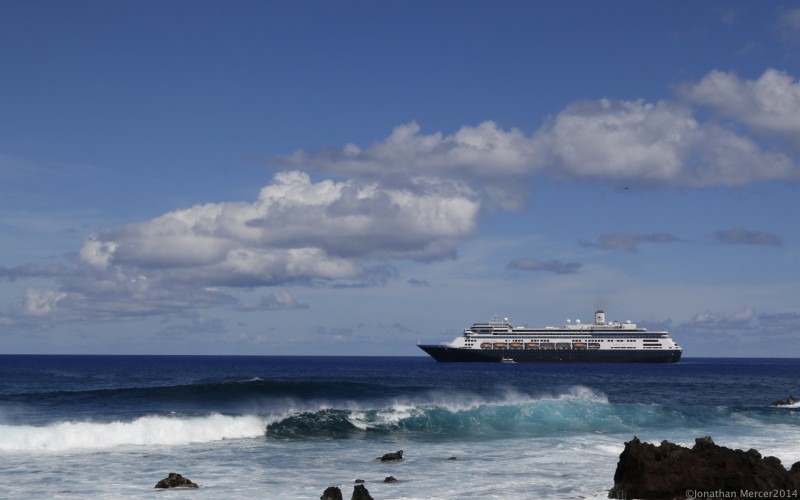 We’re off to Pitcairn Island, 1120 miles away, home of the ‘Bounty’ mutineers and we arrive on Friday after 2 clock changes. It has been weird, travelling west to Easter Island, but not changing clocks because the island, being Chilean, stays on Chilean time, even though it’s over 2000 miles to the west.
