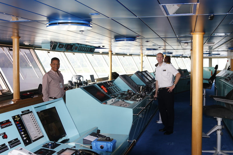 The pilot meanwhile has come to the bridge and I have familiarised him with the instrumentation, the Amsterdam’s dimensions and her handling characteristics. We come to the agreement that ship’s staff, (me and 2nd-in-command, Friso), will take her into and out of the locks and when the locos are hooked on, he will take us into the final part of the chamber; he is pleased, this is going to work well.