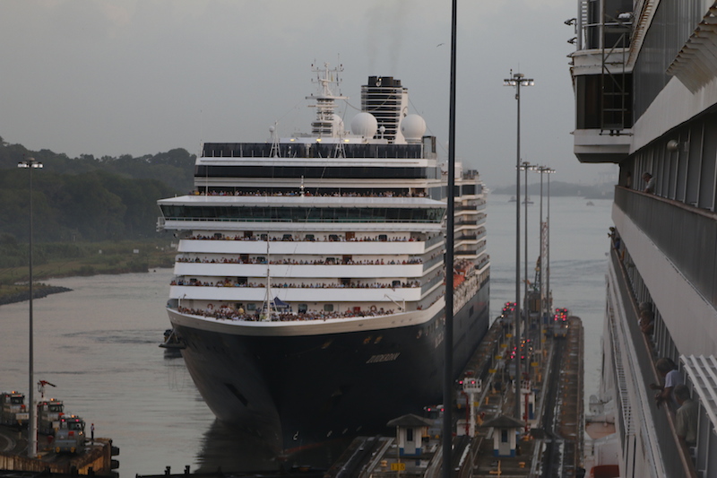 Going into Gatun, we are followed by the ‘Zuiderdam’, another of our ships; she is going to transit Gatun and then anchor in Gatun Lake, her guests then being transferred ashore on tours before she leaves and again, out of Gatun once more and back into the Caribbean.
