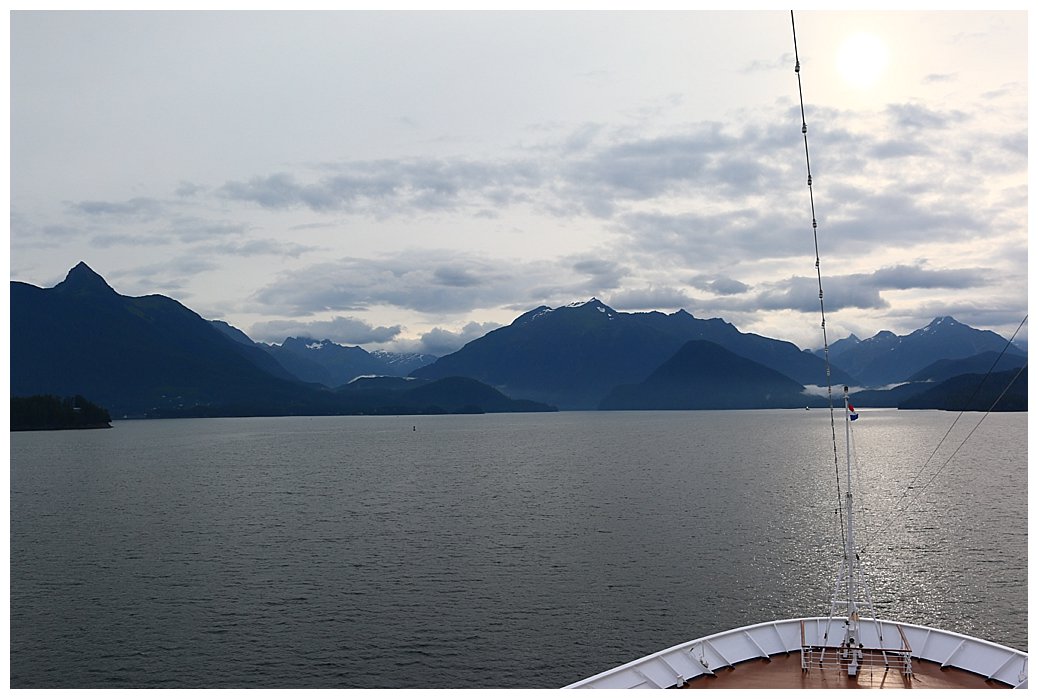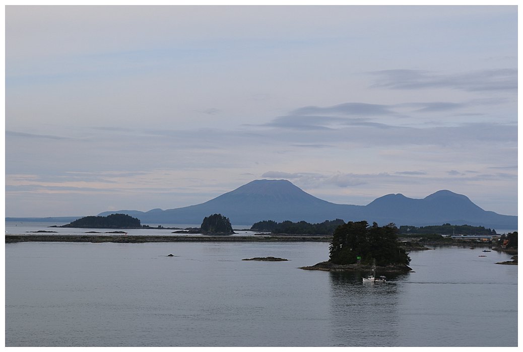 The approach towards Sitka has to be one of the prettiest we experience. Towering, tree-clad peaks, snow clad valleys and islands, scores of them, dotted around Sitka Sound.