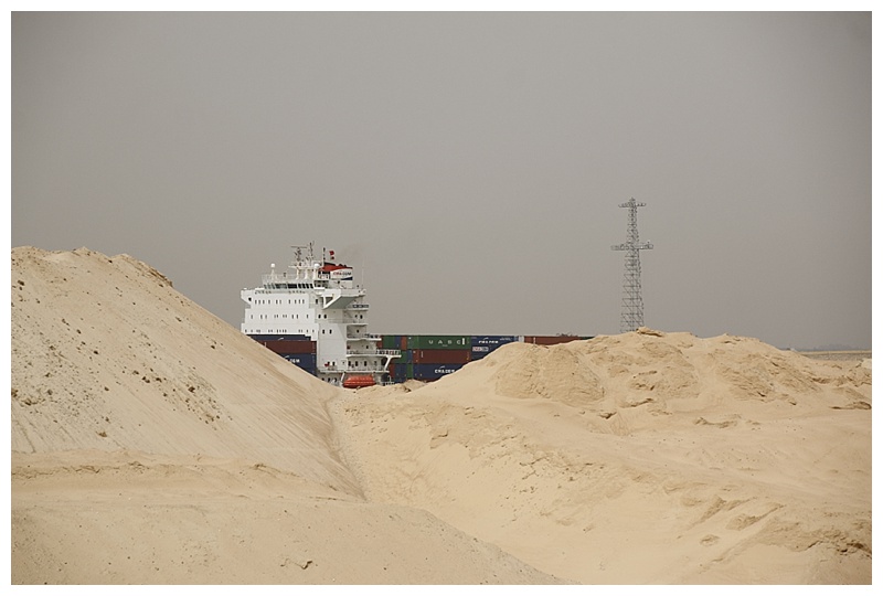The canal has seen some massive (and expensive) expansion. New channels have been dug out of the desert, this to overcome the necessity for north and south convoys to anchor in the Bitter Lakes, the only expanse of water wide enough to allow passing, or being restricted to 1 north and 1 south bound every 12 hours. Last year, having dashed from Aqaba to Suez, I just managed to register for a convoy, had I not, we would have missed our transit by a day and lost our Israeli ports; this because, while expansion was still ongoing, there was only 1 convoy a day, north or south, but not both. Had we arrived as scheduled on our itinerary, we would have had to wait another day to travel north.