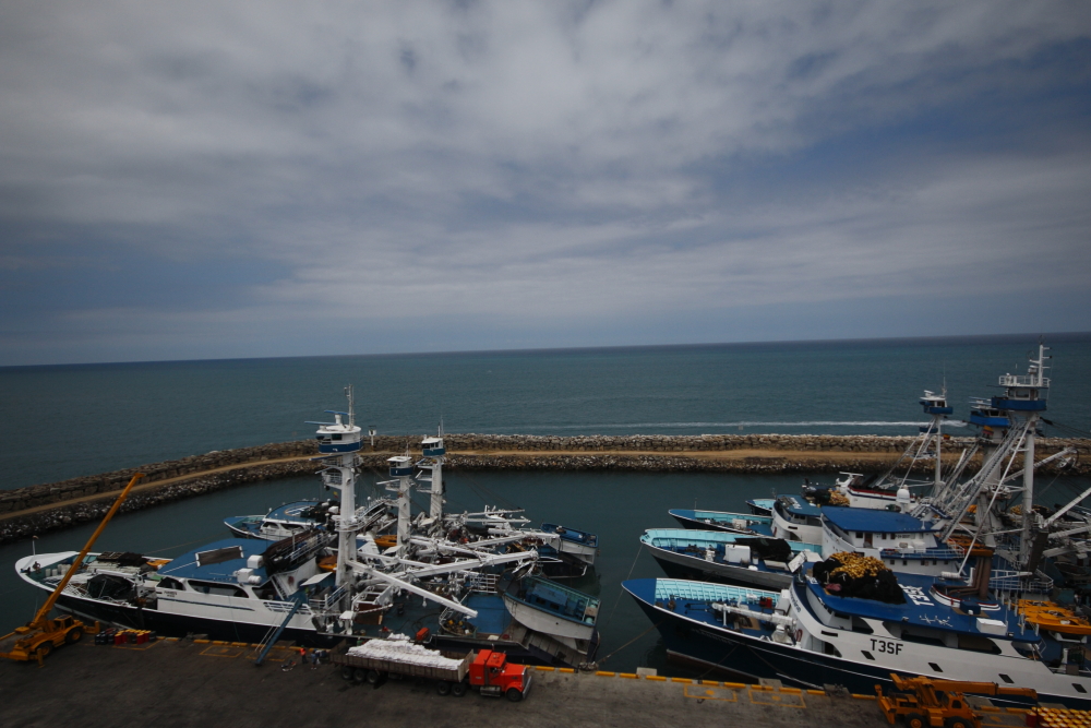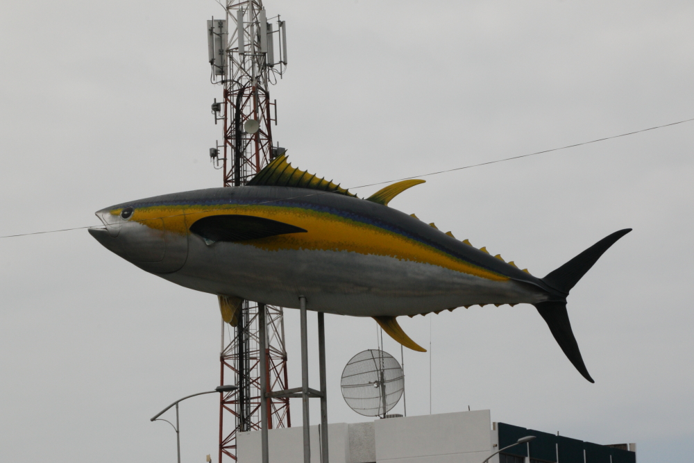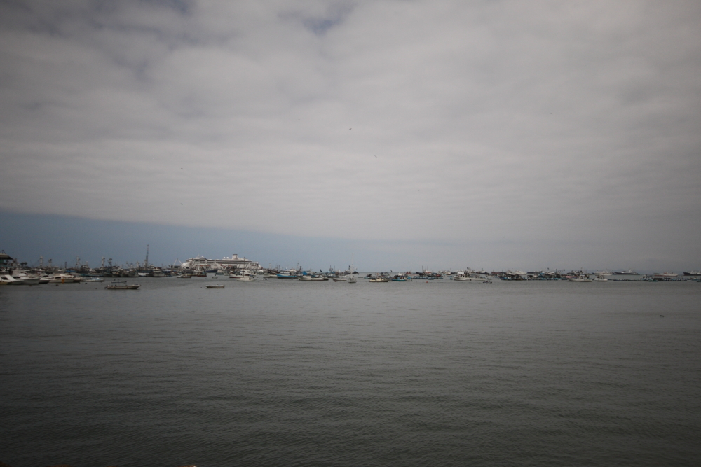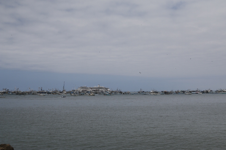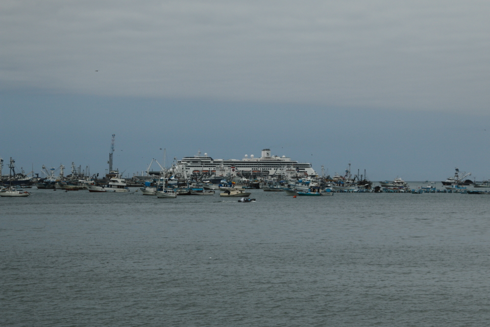 A small port with only 2 piers, the berth was cleared for us as it usually houses tuna fishing boats.  Even so, we are surrounded by them; triple banked and anchored, a refrigerated cargo ship is opposite us, loading frozen tuna.  As you may have guessed, the region thrives on fishing, the cold Peruvian current brings bounteous amounts to area.  The restaurants on the numerous beaches are renown for their seafood and people travel great distances to sample it.