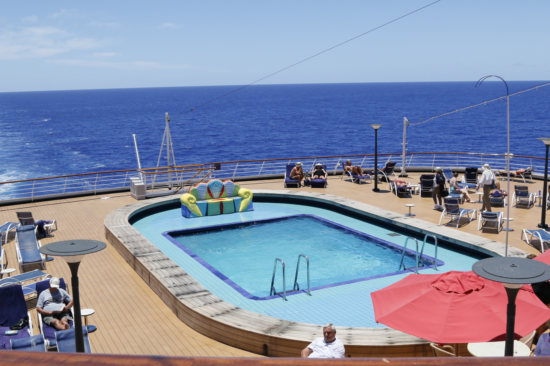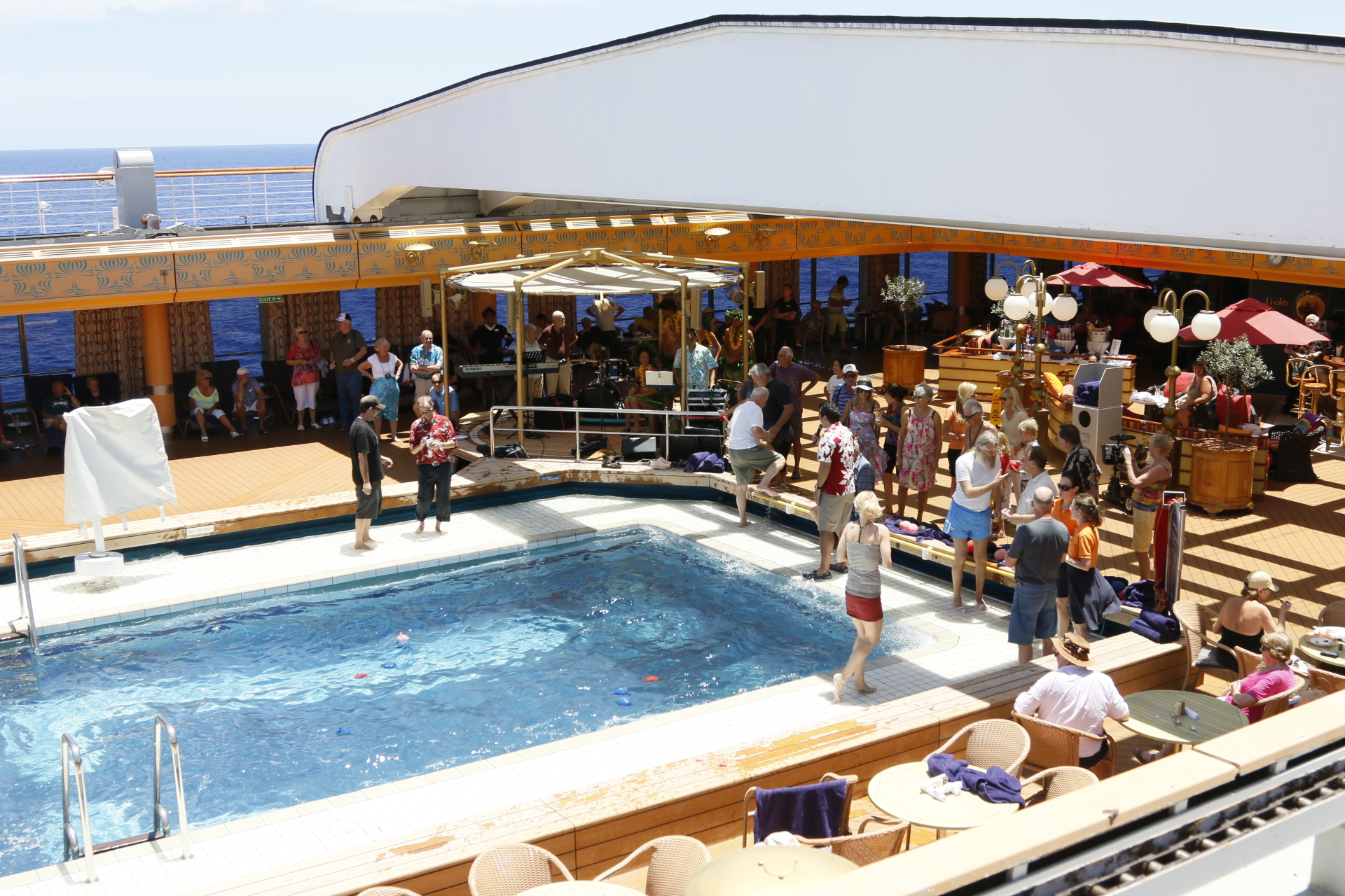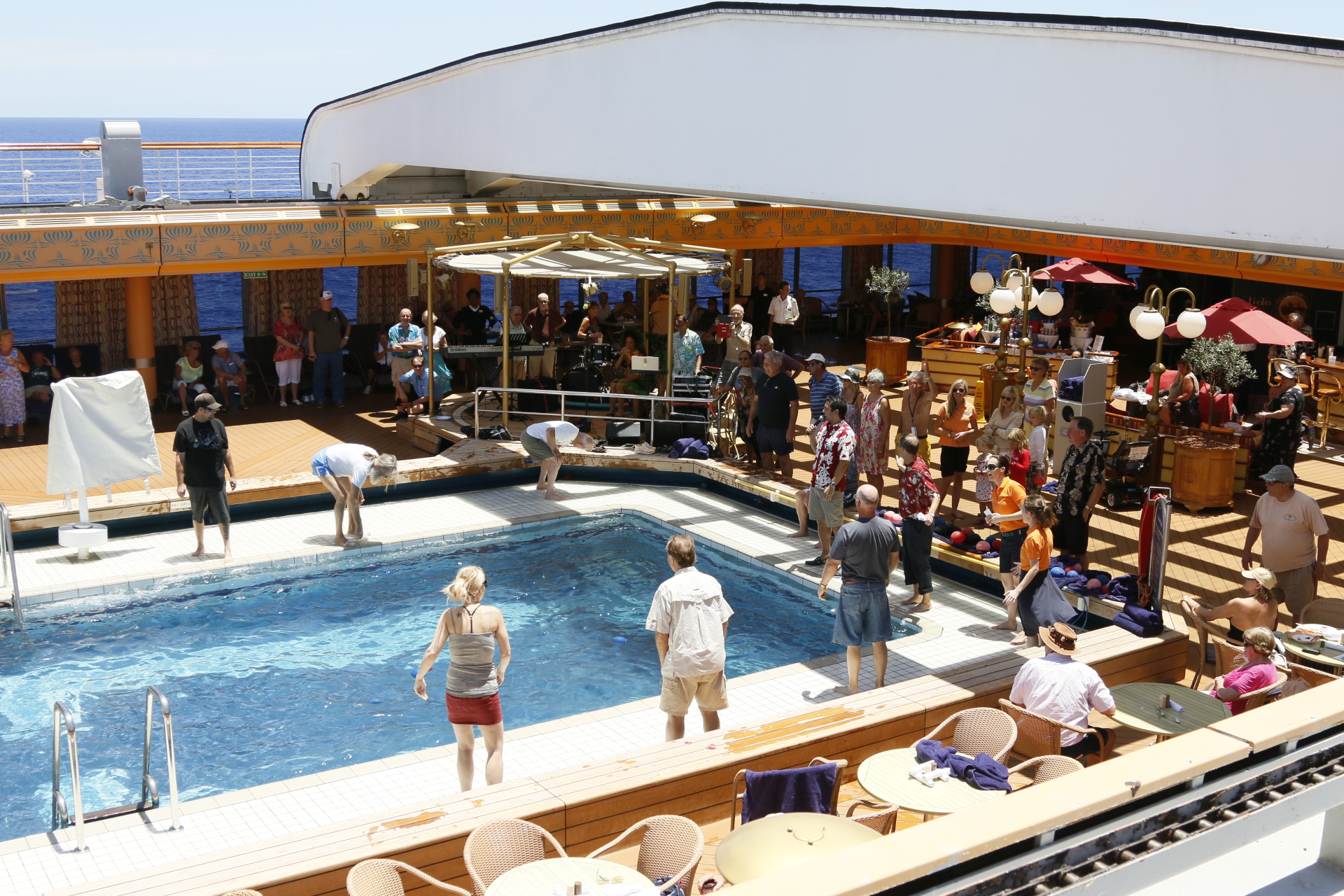 It’s been a lovely sunny day and the Pacific is still relatively calm.  There has been a pool-party, hosted by the Cruise director and guests playing fun games with balloons and oranges.  Added to the mix was a performance by some Tahitian dancers, who joined us in Callao.